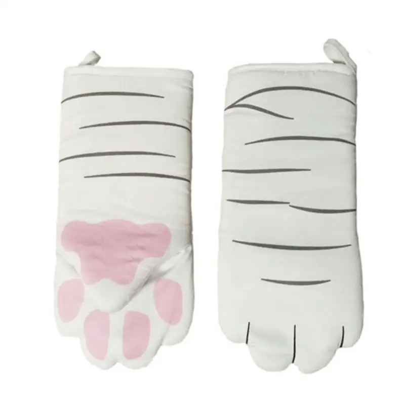 3D Cartoon Cat Paws Oven Mitts Long Cotton Baking Insulation Gloves Microwave Heat Resistant Non-slip Kitchen Gloves