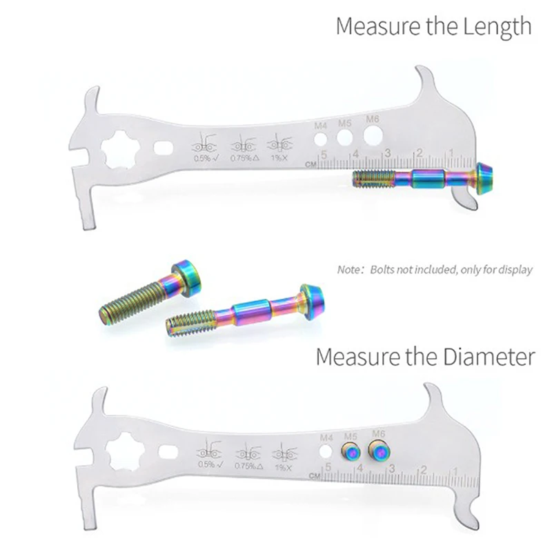 Материал: нержавеющая сталь мгновенно советует вам, когда пришло время изменить цепь, а также имеет функцию meaure болты длиной и диаметром, цепной крючок.