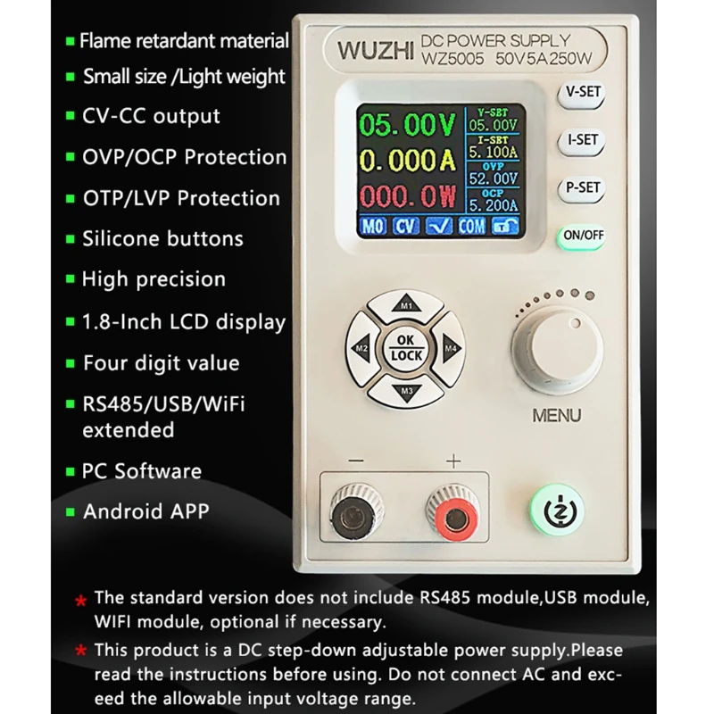 WZ5005 DC-Buck преобразователь CC CV 50V 5A модуль питания регулируемый лабораторный источник питания 5V 12V 24V связь