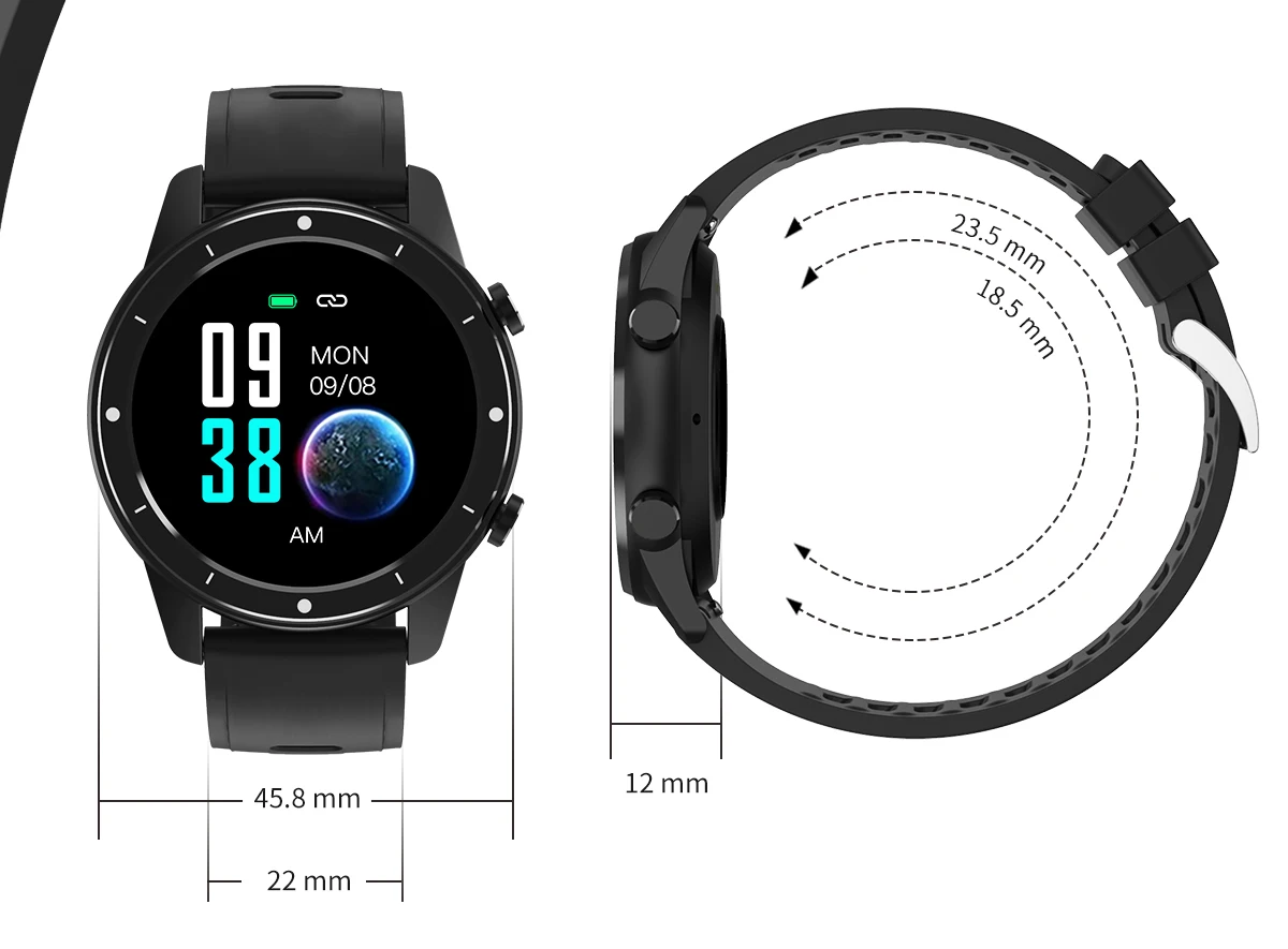 Размер дисплея: 1,28 дюйма IPS красочный