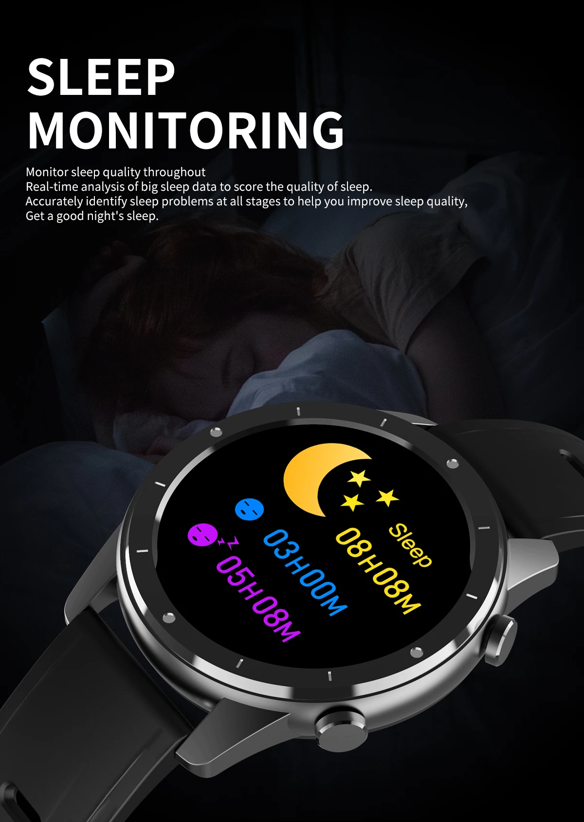 1. Носимые устройства контролируют деятельность человека с помощью электронных датчиков. Они находятся на уровне бытовой электроники. Это нормально иметь определенные отклонения. Пользователи должны рассматривать эти данные объективно. Пожалуйста, не сравнивайте его с больничным оборудованием, которое не является медицинским устройством! Перед использованием отсканируйте qr-код в руководстве, чтобы загрузить приложение и подключить его к часам в приложении.