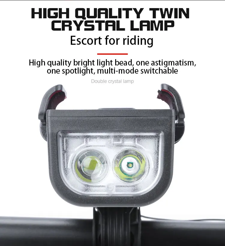 Мини велосипедный светильник 3 в 1, многофункциональный велосипедный светильник, зарядка через USB, динамик, передний светильник для телефона, велосипедный светодиодный светильник, аксессуары
