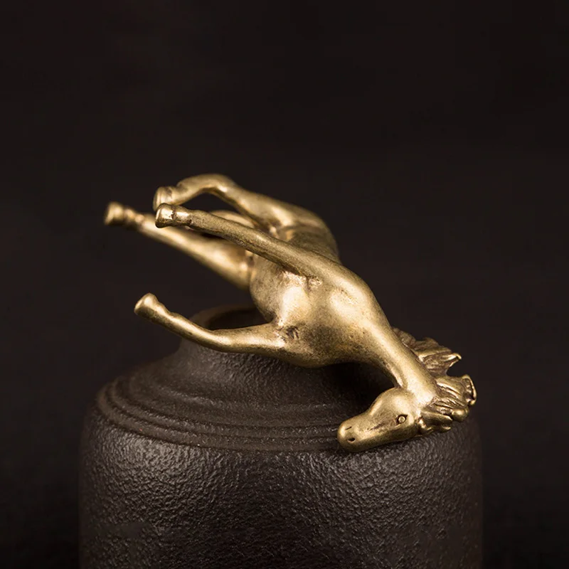 Винтажная медная статуя лошади счастливые настольные украшения из чистой латуни фигурки животных миниатюрные чайные украшения для домашних животных аксессуары