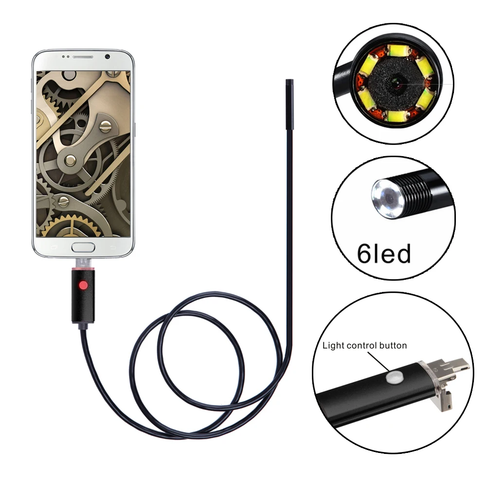 2 м 6LED 2в1 Android/PC эндоскоп водонепроницаемый осмотр микро USB провод HD видео камера 5,5/7,0 мм