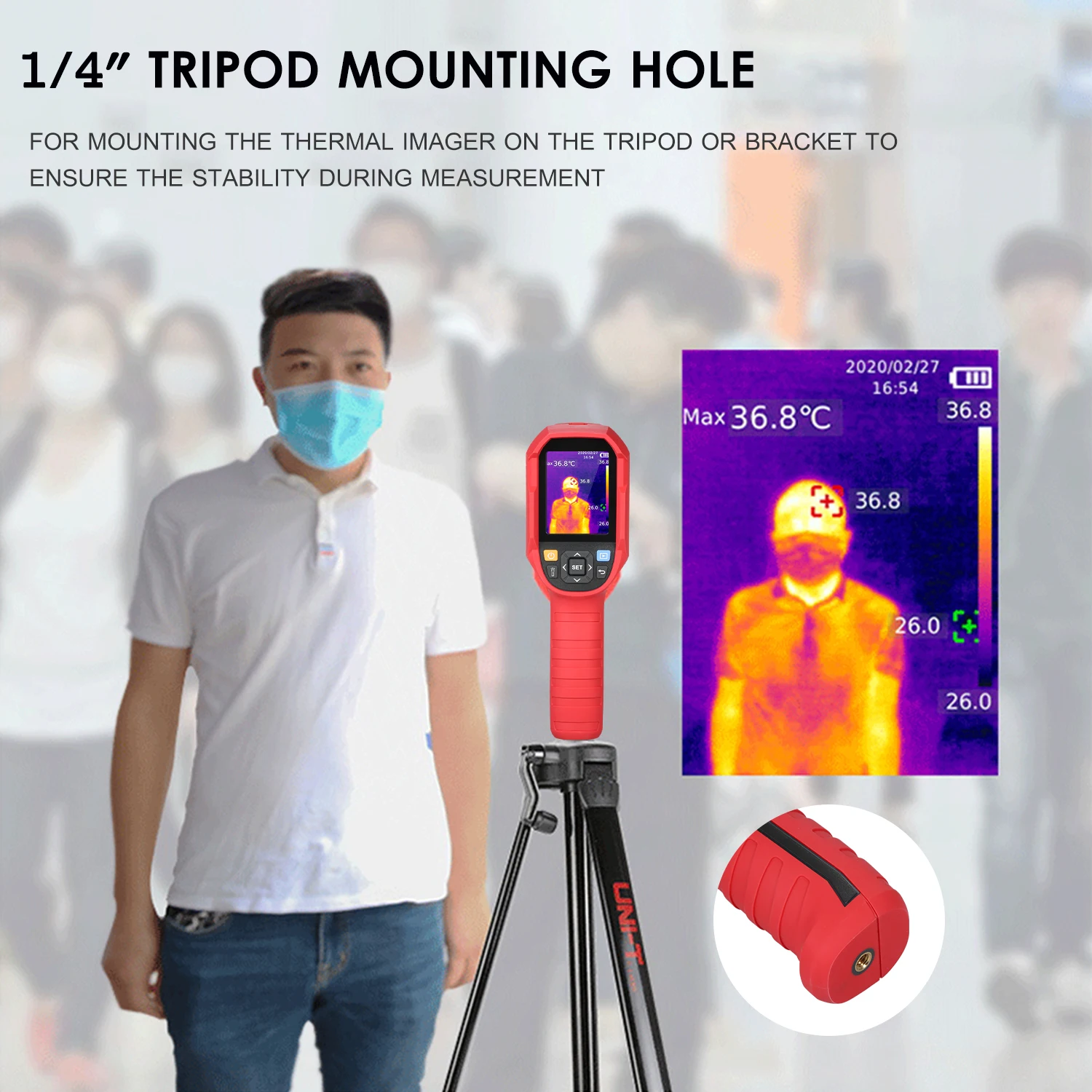 Крепление штатива: 1/4 "монтажное отверстие штатива в нижней части ручки, вы можете установить тепловизор на штативе, чтобы обеспечить стабильность во время измерения.