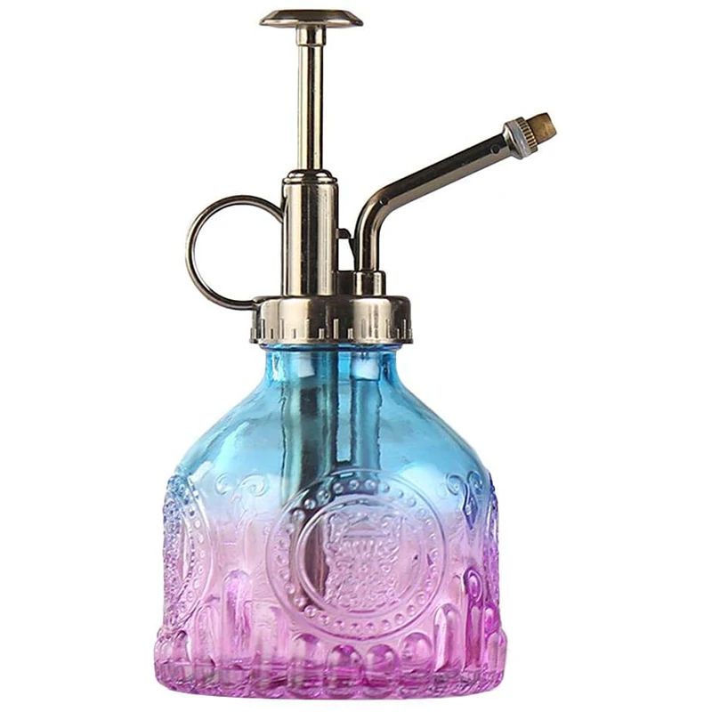 Item Type: Watering Can Material: Glass, Plastic Pattern Type: Embossed Capacity: 200ml Color: Transparent, Brown, Brown&Green, Blue&Purple, Gray, Purple, Red, Blue, Yellow&Green Size: 16.3*7.5cm(H*Diameter)