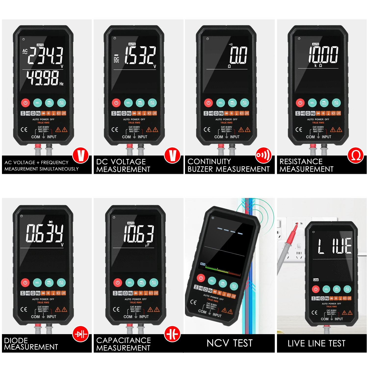 4 режима измерения: автоматическое измерение (напряжение постоянного тока/переменного тока, сопротивление и непрерывность могут быть измерены), тест NCV, испытание в режиме реального времени и тест на диод.