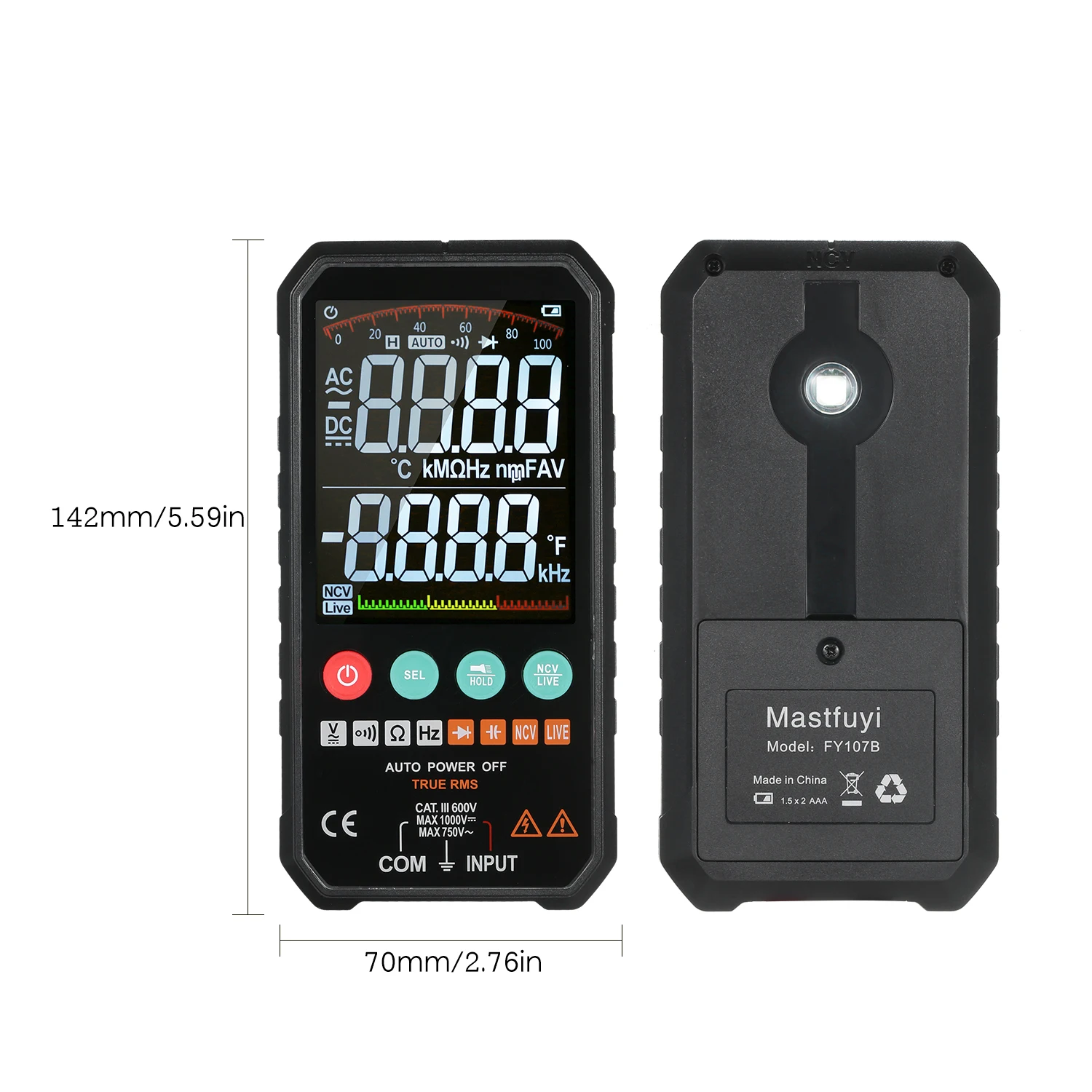 Широкий диапазон измерения: Может использоваться для измерения напряжения переменного/постоянного тока, сопротивления, емкости, частоты, диодов и непрерывности, NCV тестирования, температуры (только модель FY107C) и т. Д.