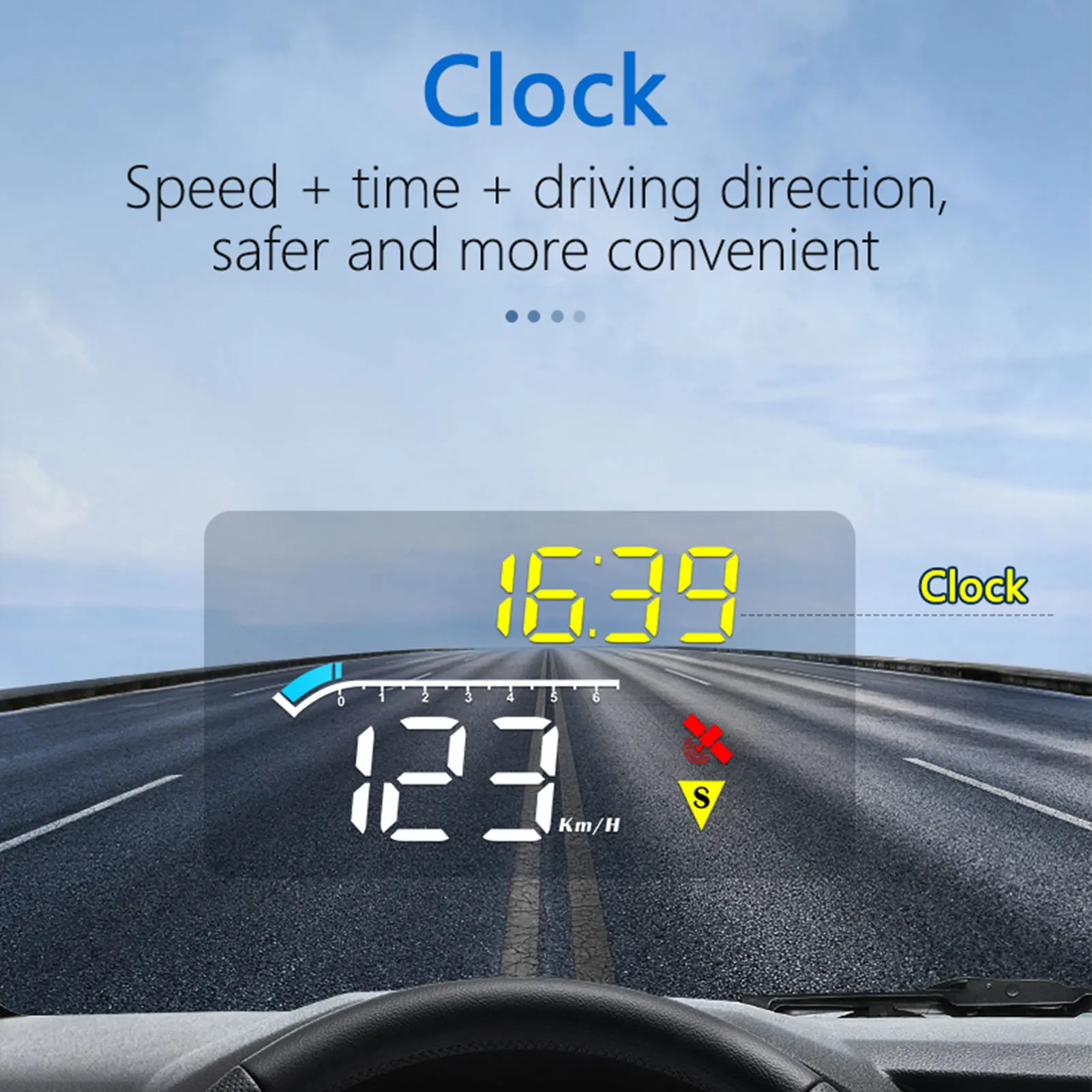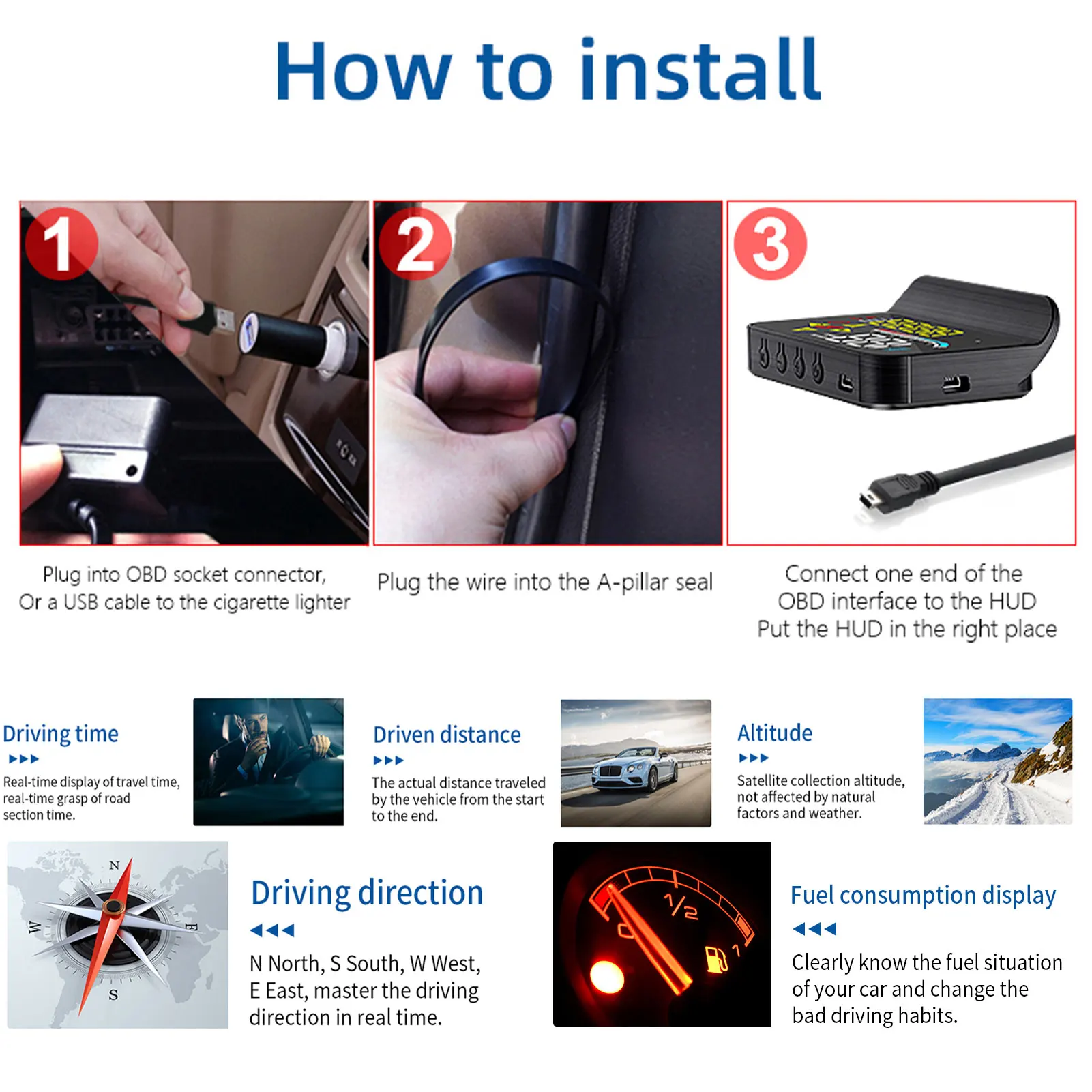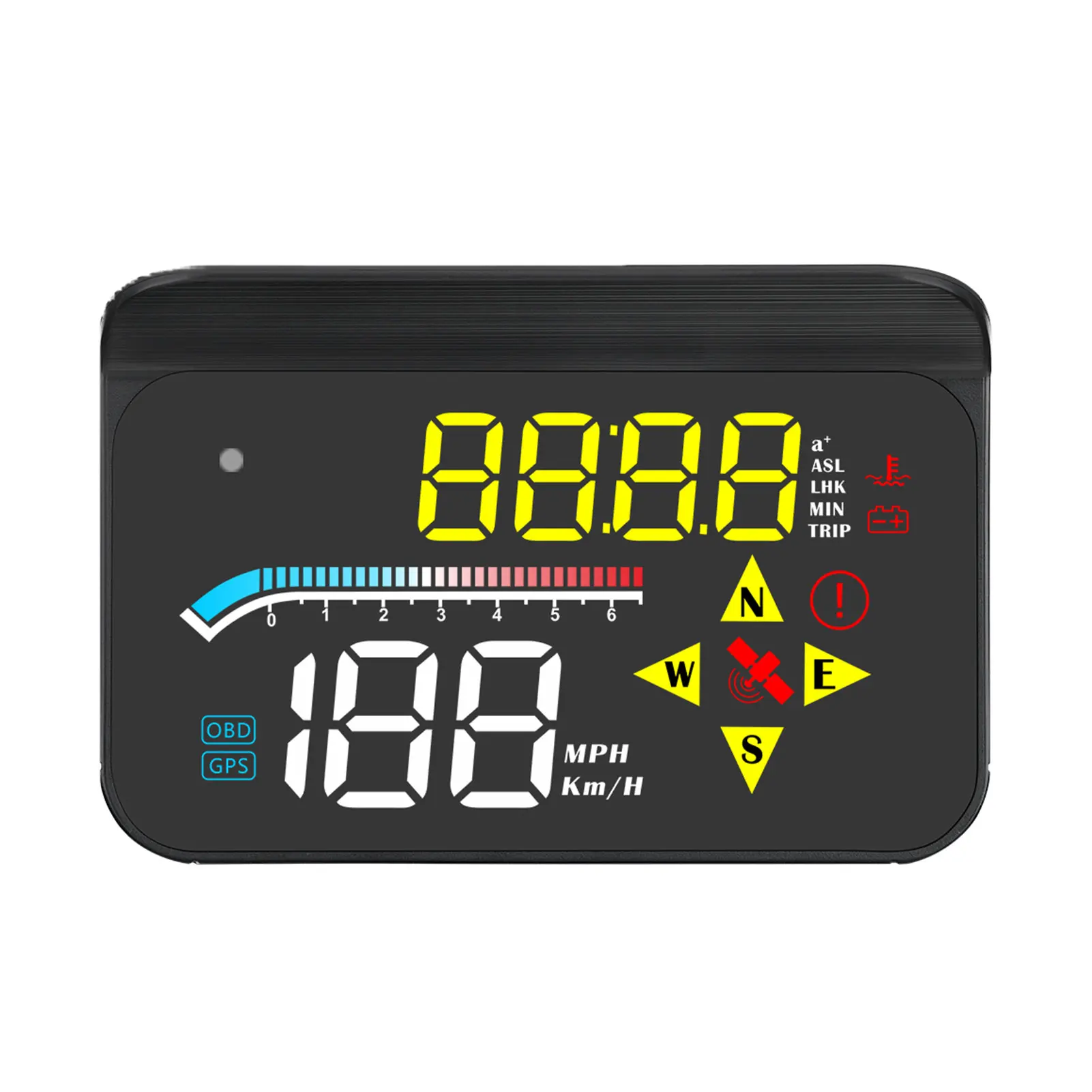 HUD короткое для дисплея головы вверх, основная функция заключается в том, чтобы отразить информацию о приборной панели автомобиля. (например, скорость, об/мин, температура воды, напряжение, расстояние поездки и т. д.)