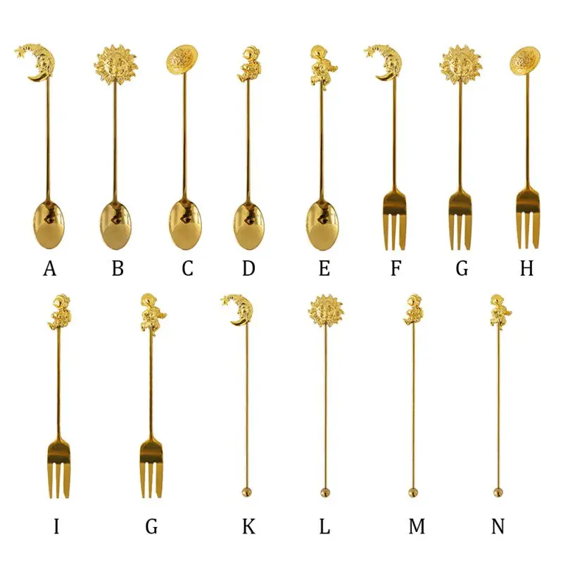 1. Отборные материалы, изготовленные из пищевой нержавеющей стали 304, используется для горячих и холодных напитков, безопасные и экологически чистые, могут использоваться с уверенностью. 2. Форма Реалистичная, металлический материал не деформируется, позолоченный блеск яркий и не выцветает. 3. Гладкая дуга, ретро-дизайн, шикарный и красивый, красивый и просторный. 4. Разнообразие применения, подходит для тортов, кофе, десертов, чая и т. д. 5 светильник роскошный стиль, изысканный и элегантный, улучшает жизненное настроение и вкус элитной жизни. 6. Для удовлетворения различных потребностей доступны ложки, вилки, стержни для перемешивания и множество различных стилей.