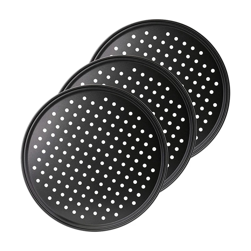 3 упаковки сковородки для пиццы с отверстиями, Круглый антипригарный Хрустальный перфорированный лоток из углеродистой стали для домашней кухонной печи и т. Д.