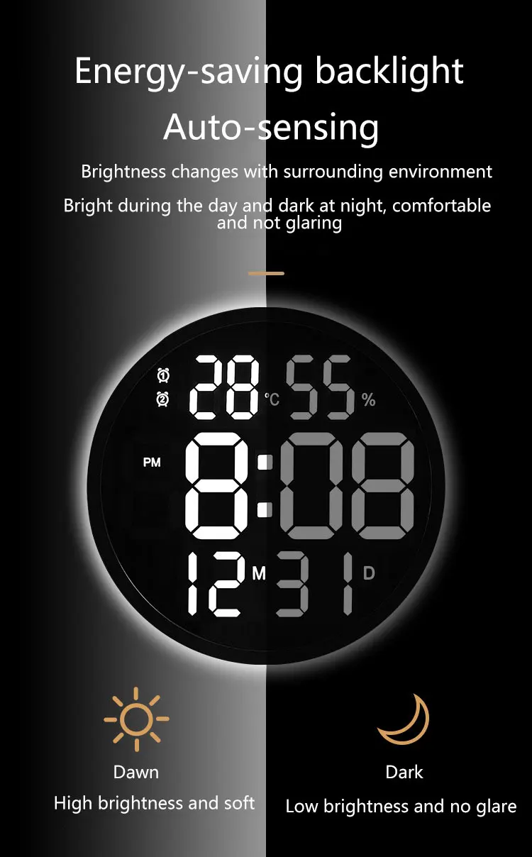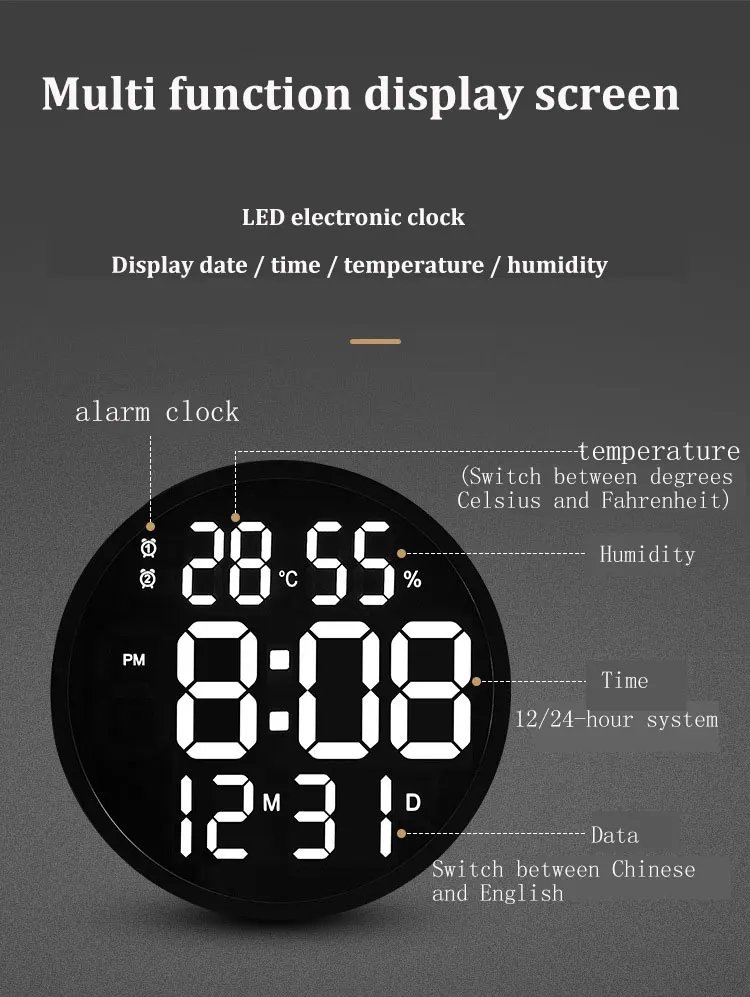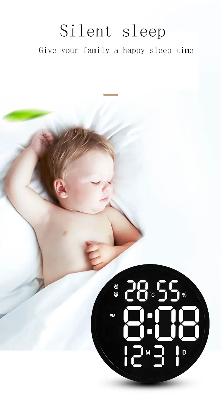 Светодиодный электронный цифровой настенный часы дисплей будильник с датой температуры светодиодный часы с большим количеством украшения для гостиной