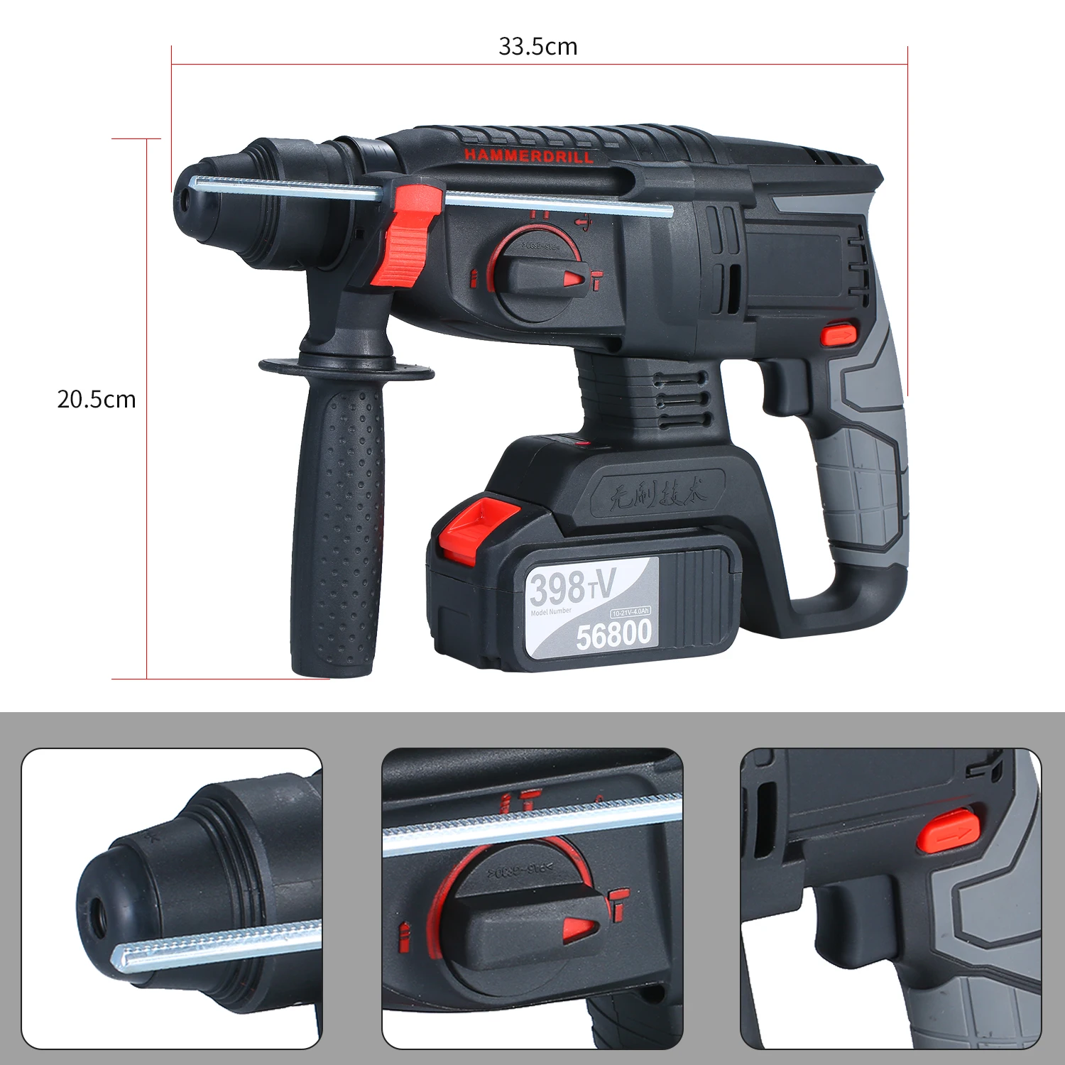 Широкое применение-профессиональная дрель-перфоратор обеспечивает мощный удар и прочность молотка для выполнения сверхмощных проектов по дереву, кладке, твердой стали и бетону, что означает, что большая часть работ удовлетворяет потребности.