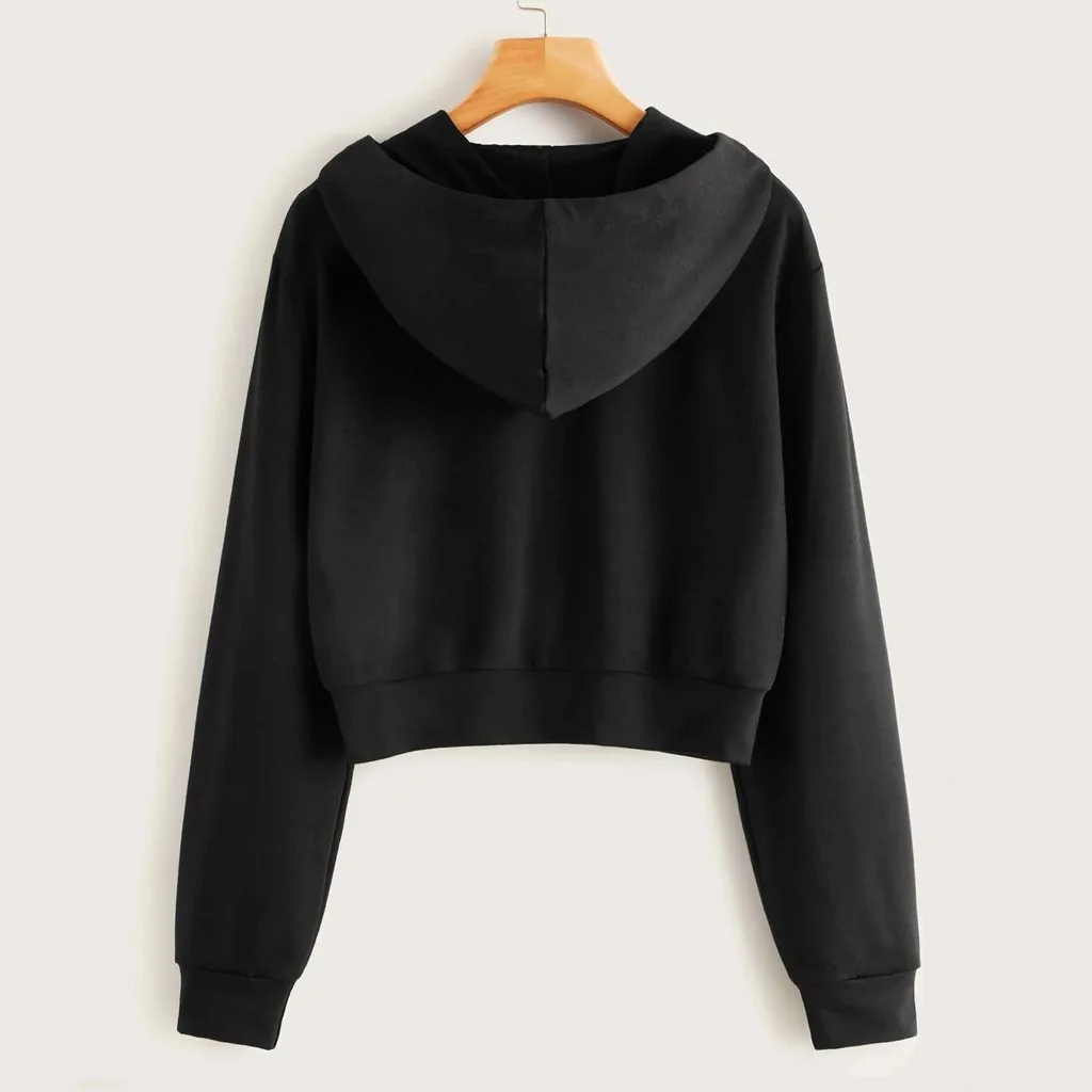 Женская Повседневная Однотонная рубашка с длинным рукавом и карманом на молнии, толстовка с капюшоном, топы