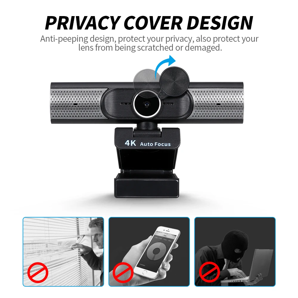 4K веб-камера AF Автофокус веб-камера Встроенный микрофон подключи и работай с защитой конфиденциальности многоступенчатые встроенные динамики Черная Камера