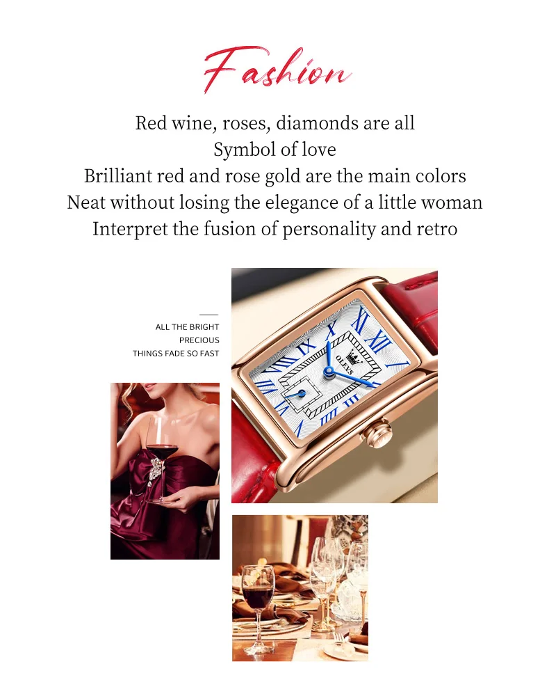 OLEVS Ретро прямоугольные Модные кварцевые женские часы