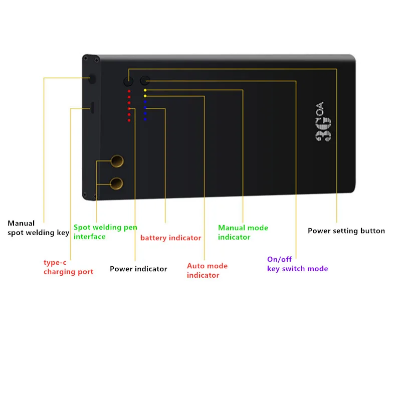 Тип батареи: литий-полимерный аккумулятор Выход напряжение: 4,2 V (макс) Выходной ток: 650A (макс.) Расчетный ток: 1000А (макс.) Выходной интерфейс: зарядный порт Type-C Входные параметры: 5 В/2 А Размер изделия: 178*87*27 мм Рекомендуемая толщина никелевой ленты: 0,1 ~ 0,12 мм