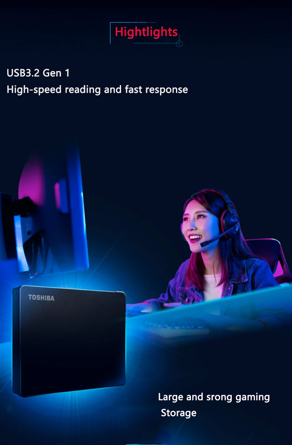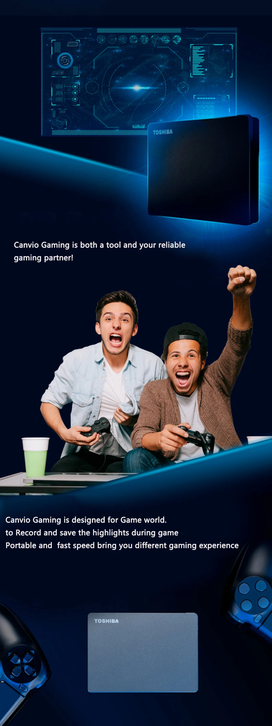 Canvio игровая, Черный стильный внешний вид, портативный и компактный дизайн,Совместимость с PlayStation, Xbox и другими подключенными игровыми консолями