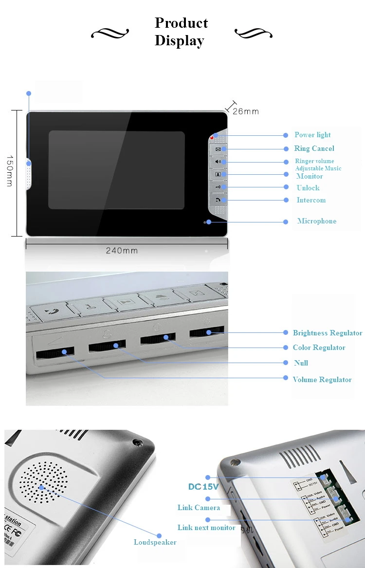 7 "цветной TFT LCD без излучения, низкое энергопотребление и высокая четкость.