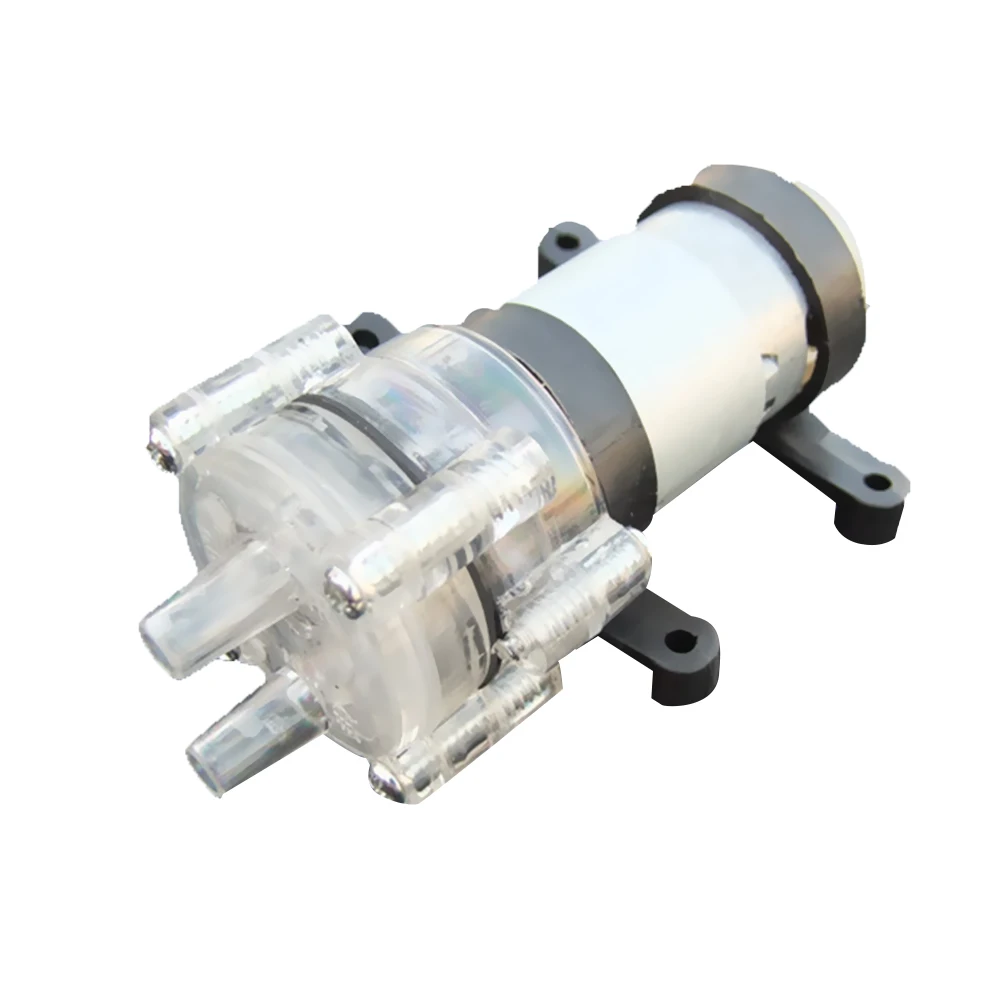 Micro dc имеет щеточный мембранный насос, газ и жидкость, он основан на оригинальной конструкции объемного насоса. Питается от вращения двигателя, с помощью вала эксцентрикового колеса двигателя, резиновой петли привода, поршневого перемещения, всасывания и разрядки внутри действия формирования полости, через закрытый, открытый обратный клапан, чтобы добиться всасывания и слива газа и жидкости. Можно вытягивать холодную или горячую воду, Который может достигать расхода воды 1,3-л/мин.