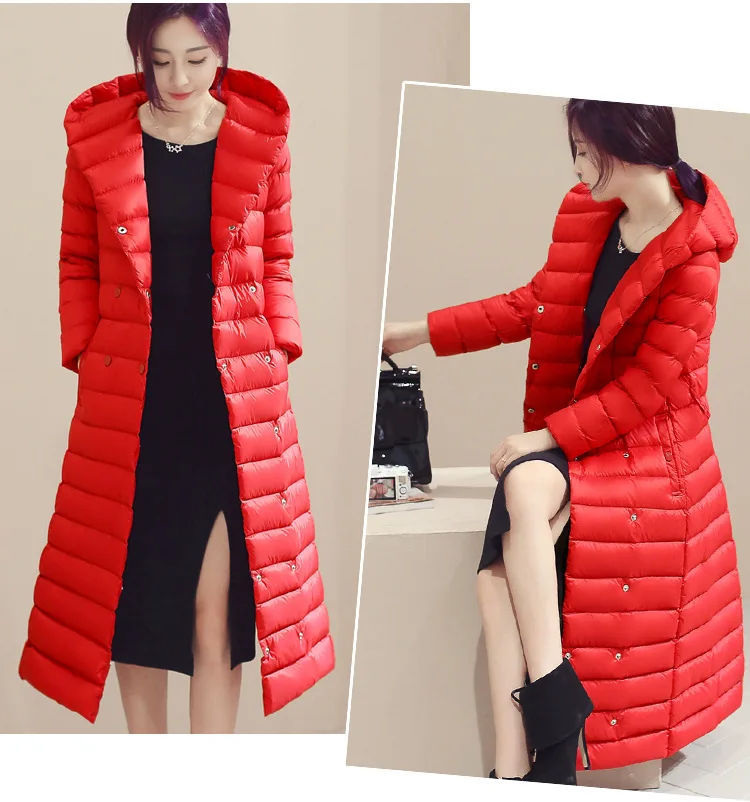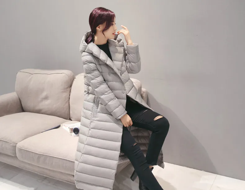 Пуховик женский на утином пуху, зимняя верхняя одежда, пальто с капюшоном, женское длинное повседневсветильник легкое ультратонкое теплое пуховое пальто, фирменная парка