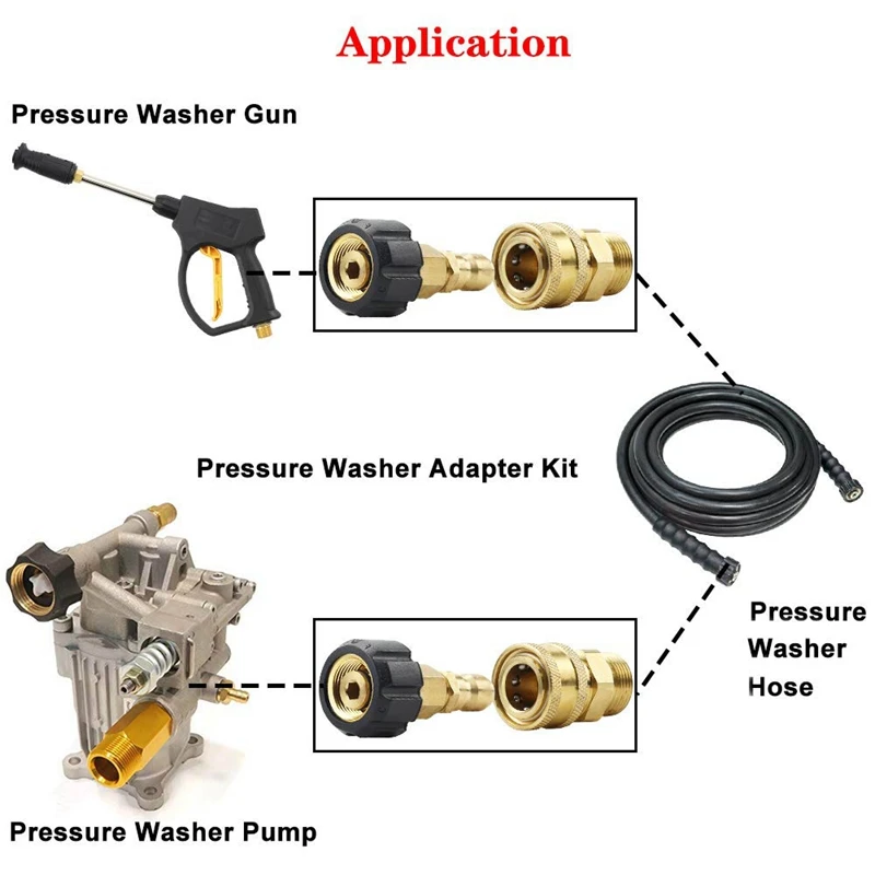 Быстроразъемный пистолет для мойки под давлением к палочке или соплу. Подключите резьбу M22 к пистолету Мойки под давлением и подключите M22 к палочке. Преобразуйте резьбовые муфты M22 в быстроразъемный соединитель 3/8 дюймов.