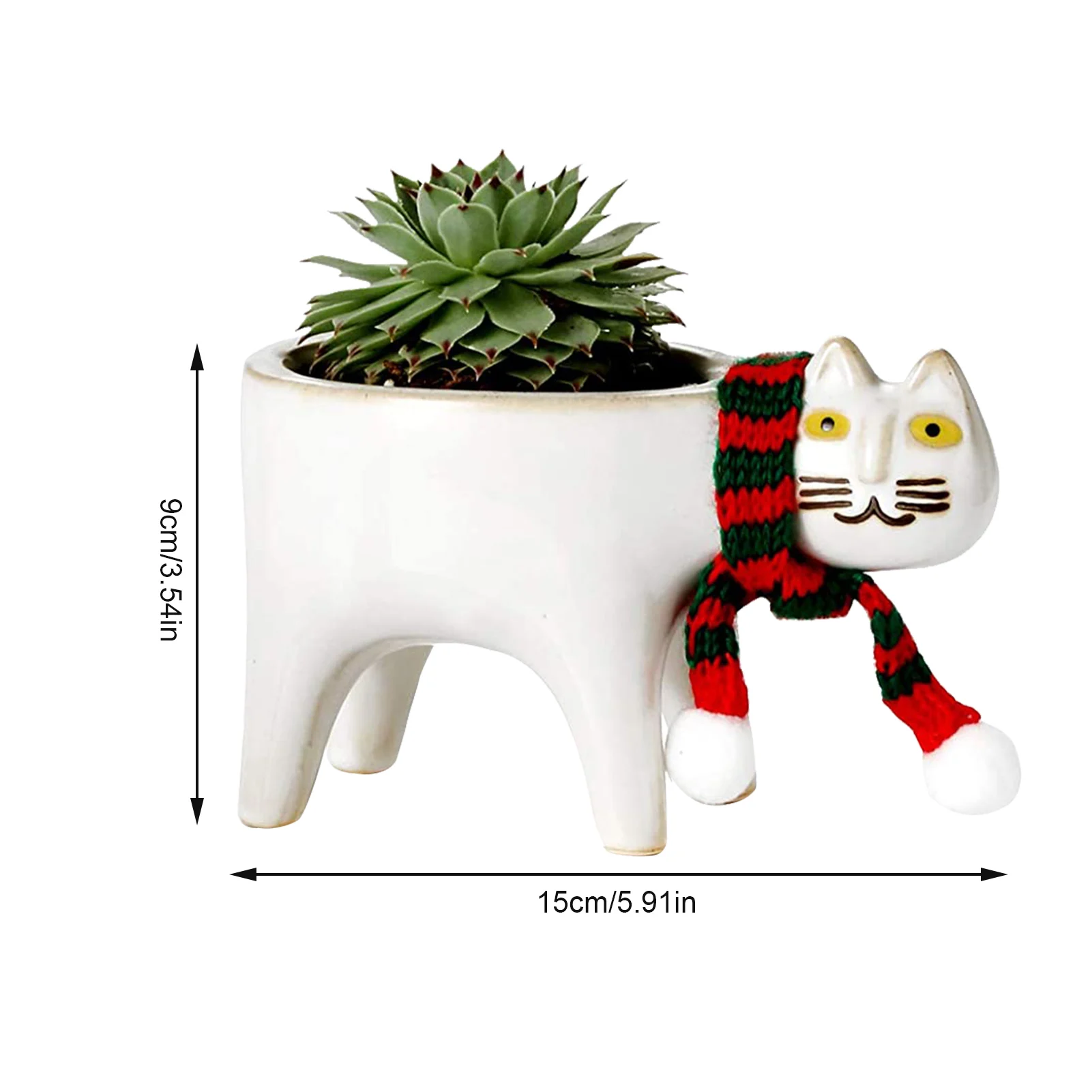 Милые зеленые растения цветочный горшок с отверстием керамический Сад Белые Горшки милый кот сочный керамический цветочный горшок с кошачий шарф Прямая поставка