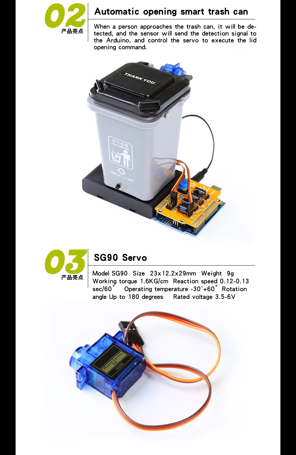 Основная плата управления: UNO R3 Тип датчика: Инфракрасная пара труб Мотор: сервопривод SG90 Среда разработки: Arduino IDE или Mixly Язык программирования: код C или графическое Программирование