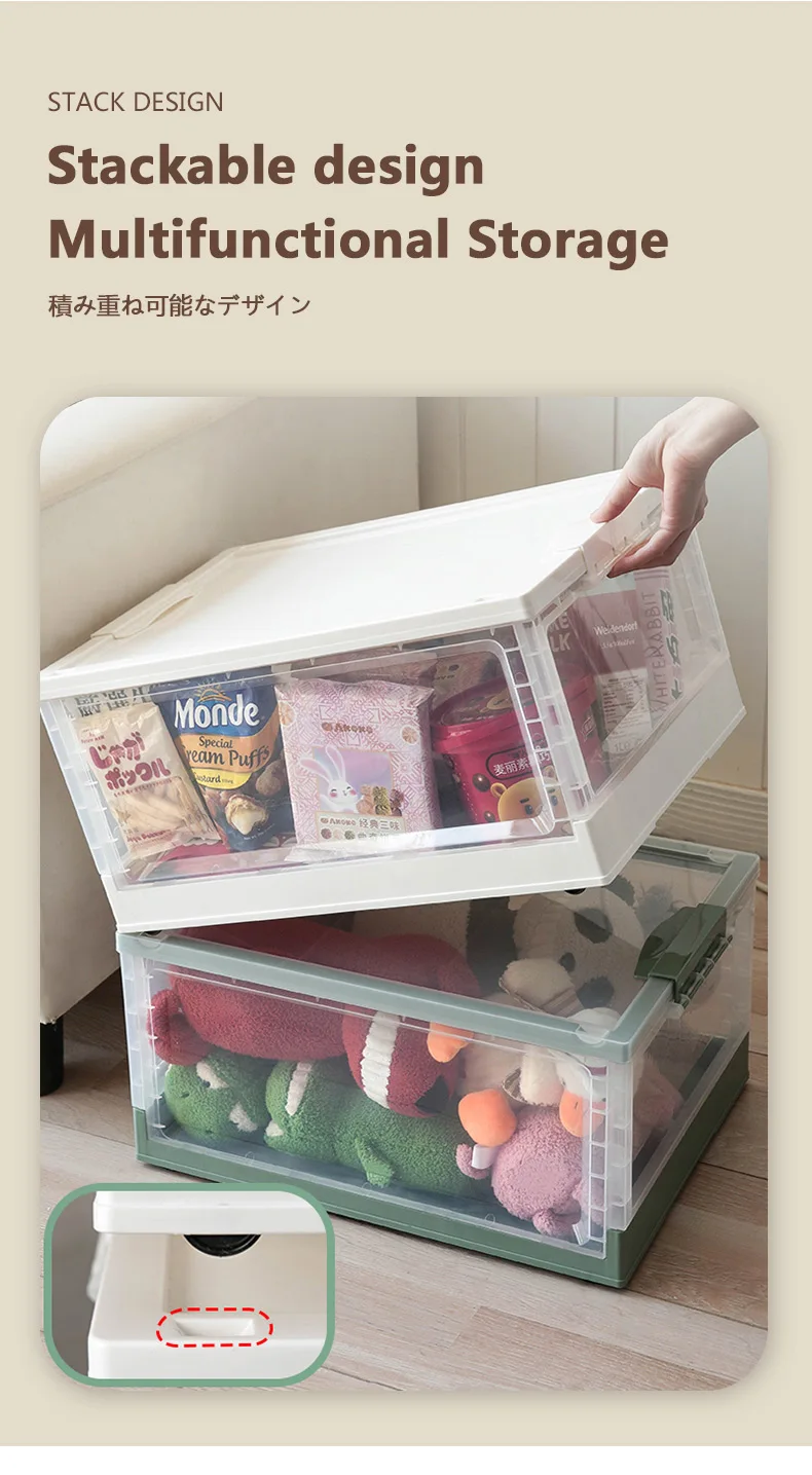 Foldable Storage Box Plastic Transparent With Cover And Rollers Large Capacity Waterproof Durable Home Car Sundries Arrange Case