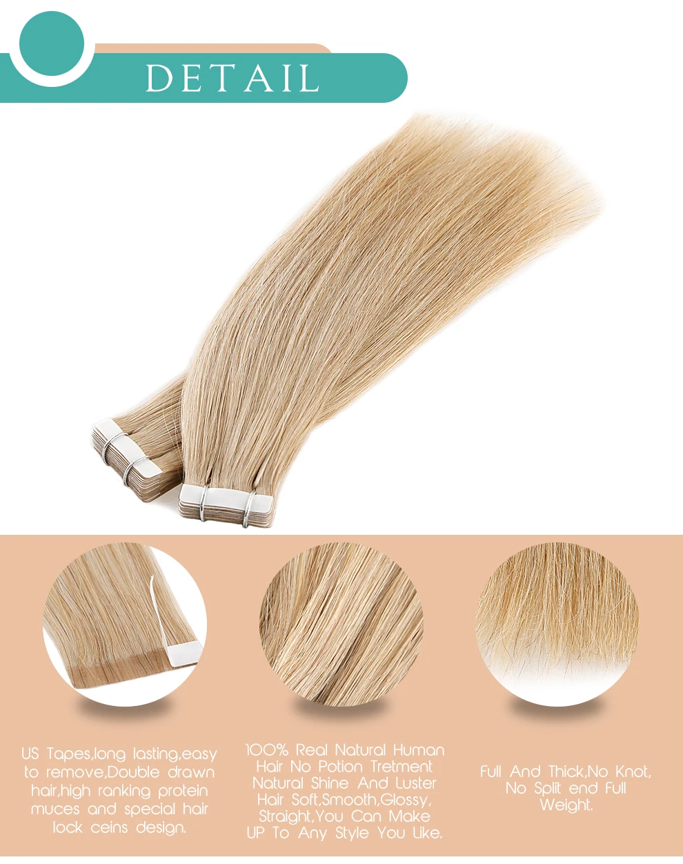 Изделие: мини-лента для наращивания волос Материал: 100% человеческие волосы, другие смешанные Длина и вес: -12 дюймов = 30 см, 1,25 г/шт. -16 дюймов = 40 см, 1,5 г/шт. -20 дюймов = 50 см, 2 г/шт. -24 дюйма = 60 см, 2,5 г/шт. Варианты цвета: темный цвет/светильник/цвет пианино/цвет балсиажа Срок службы: 3 месяца при надлежащем уходе Доставка: Если доставка осуществляется через AliExpress стандартную доставку, обычно доставка занимает 20-30 дней. Если доставка осуществляется через DHL или Fedex, обычно Доставка занимает 3-5 рабочих дней. Предложение по применению: -Если у вас короткие волосы, вы хотите иметь эффект длинных и объемных волос, выберите 3 упаковки (60 шт.). -Если у вас длинные волосы, но тоньше, вы хотите эффект объема, выберите 2 или 3 упаковки (40-60 шт.) будет лучше. -Если вы хотите эффект подсветки или хотите больше объема, выберите более 1 упаковку (20 шт.), будет лучше.
