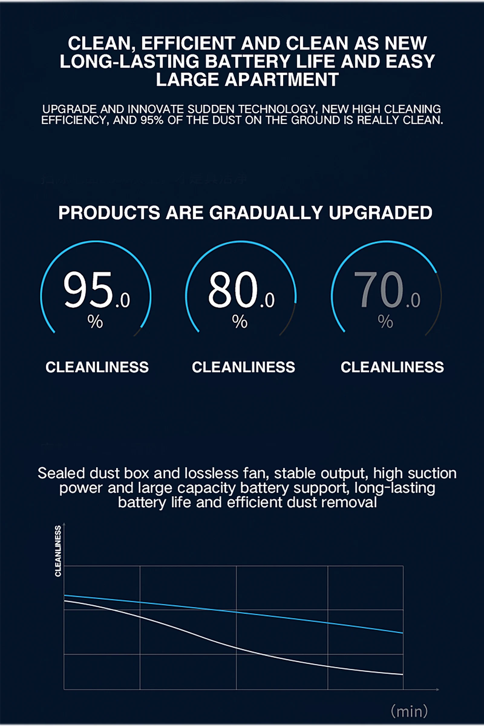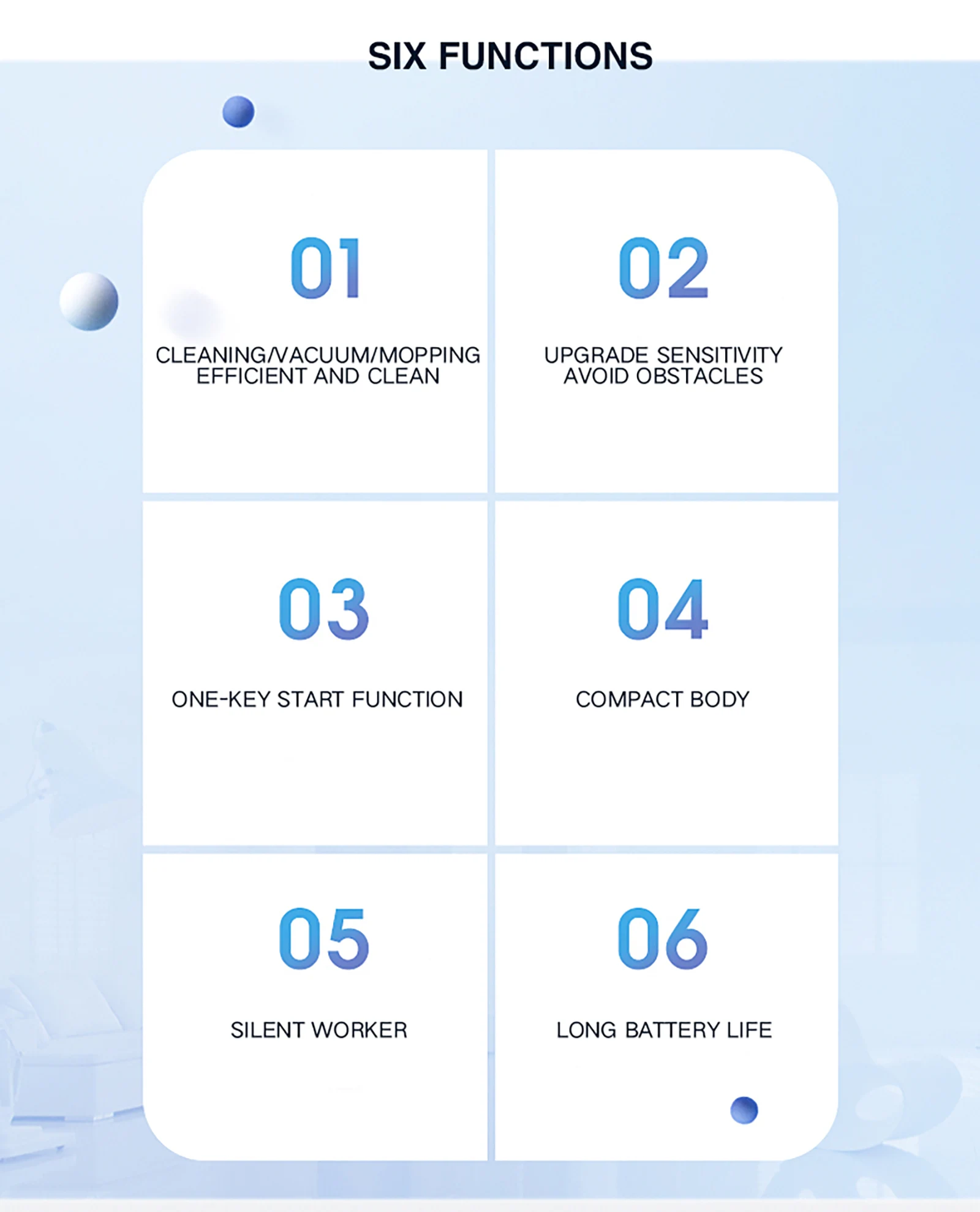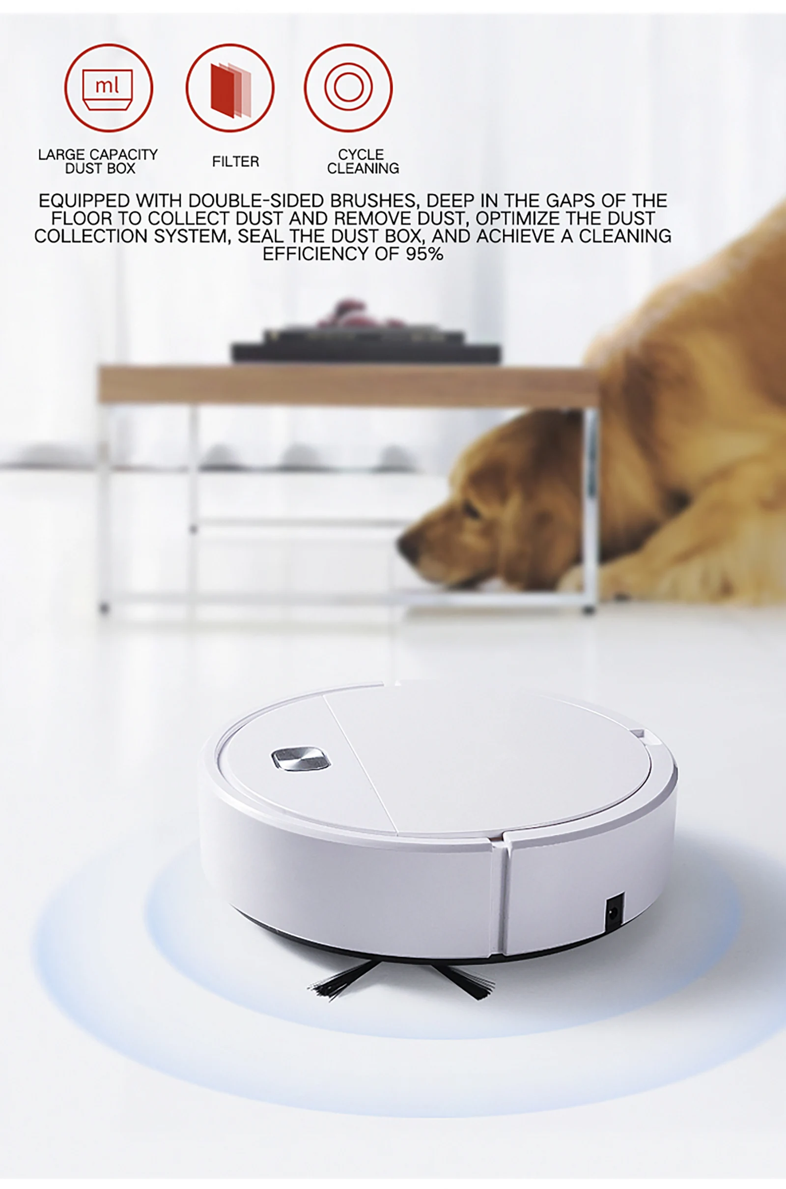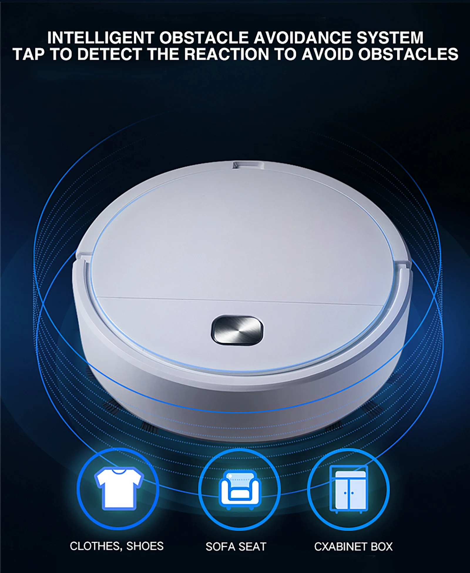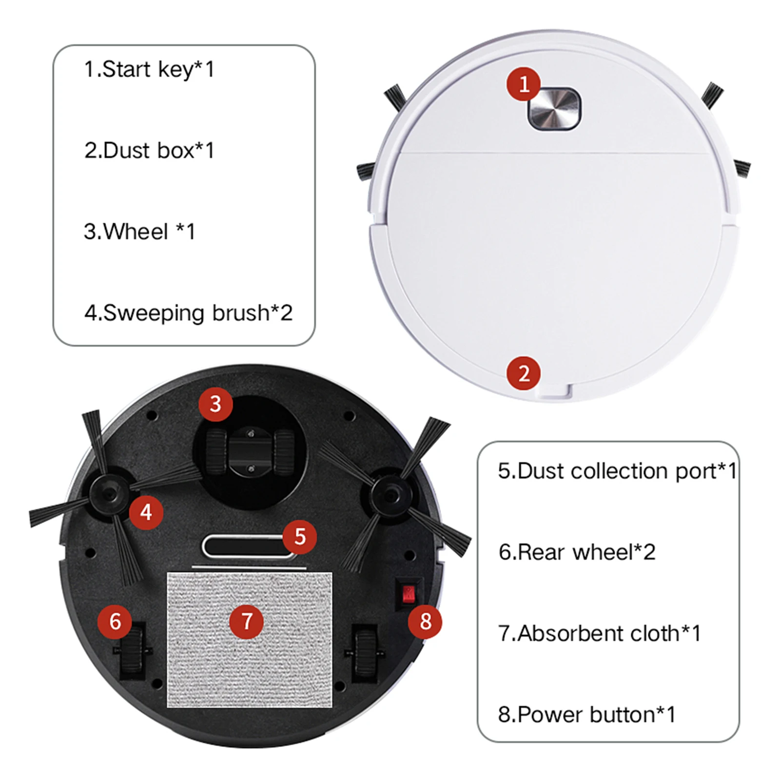 Характеристика: Запуск одной кнопкой, поглощение пыли и волос, автоматическое изменение направления и т. д., встроенный литиевый аккумулятор 1500 мА Это умный подметальный робот с интегрированной подметкой, поглощающей и буксирующей конструкцией. Когда вы столкнетесь с препятствиями, он будет вращаться и полагаться на дно, чтобы поглощать пыль, пыль, семена подсолнечника, волосы собаки и волосы пола. Описание: Название продукта: Интеллектуальный робот-подметатель Маршрут очистки: случайный Функция уборочной машины: всасывание растягивания Стиль подметальной машины: Интеллектуальный робот Использование окружающей среды: дома Управление: приложение Материал изделия: абс + электронные компоненты Размер продукта: 25*25*6,8 см Размер упаковки: 36*28*9,5 см Упаковочный лист: 1 уборочная машина 1X USB кабель для зарядки 1 Швабра 2X боковая щетка 1X Руководство пользователя Упаковочный лист: 1 уборочная машина 1X USB кабель для зарядки 1 Швабра 2X боковая щетка 1X Руководство пользователя