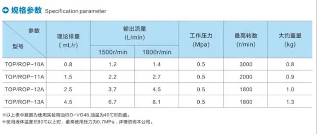 Дополнительная модель:TOP-11A Смещение: 1,6 ml/r; Пропускная способность: 1500 об/мин (2.5L/min) 1800 об/мин (2.9L/min); Давление: 0.5Mpa;