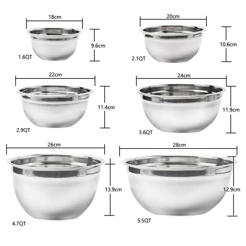 Особенности: 100% новый и высокое качество Простота в эксплуатации, безопасность и надежность. Нержавеющая сталь, прочная и долговечная. Легко чистить без мертвых углов. Можно сложить вместе, экономя пространство, сохраняя аккуратность вашей кухни. -Обязательный аксессуар одежды нового сезона и необходимости на кухне. Тип изделия: набор мисок для смешивания Материал: нержавеющая сталь Цвет: как показано Подходит для: выпечки, приготовления пищи, салата, фруктов, овощей и т. д. Размер: как показано Вес: около 1300 г Посылка включает в себя: 1 набор мисок Советы Из-за ручного измерения размер может отличаться на 1-2 см Из-за различных мониторов цвет может отличаться