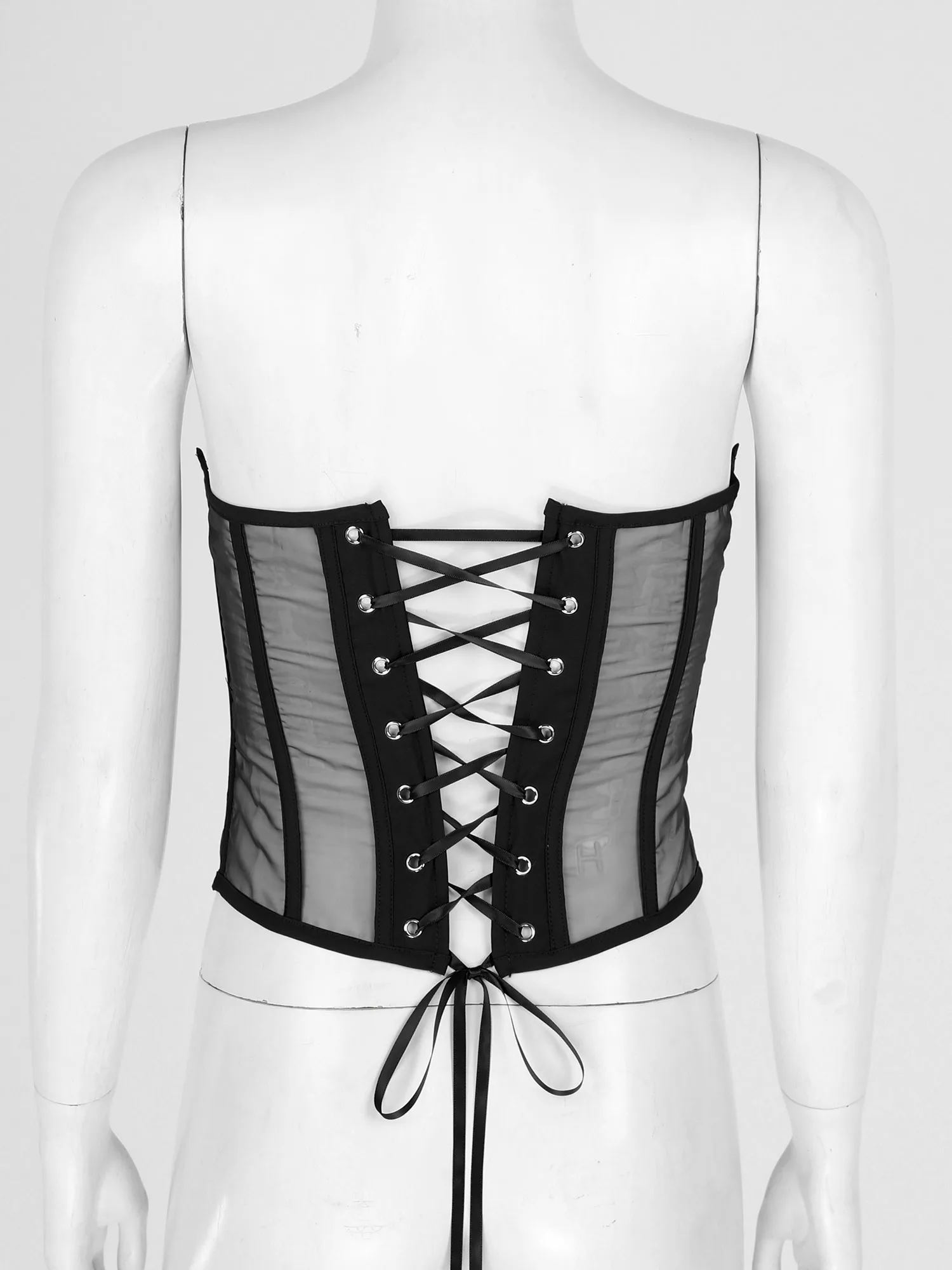 Женский Прозрачный корсет, бюстье, корсет на шнуровке, нижнее белье, облегающий корсет, корсет