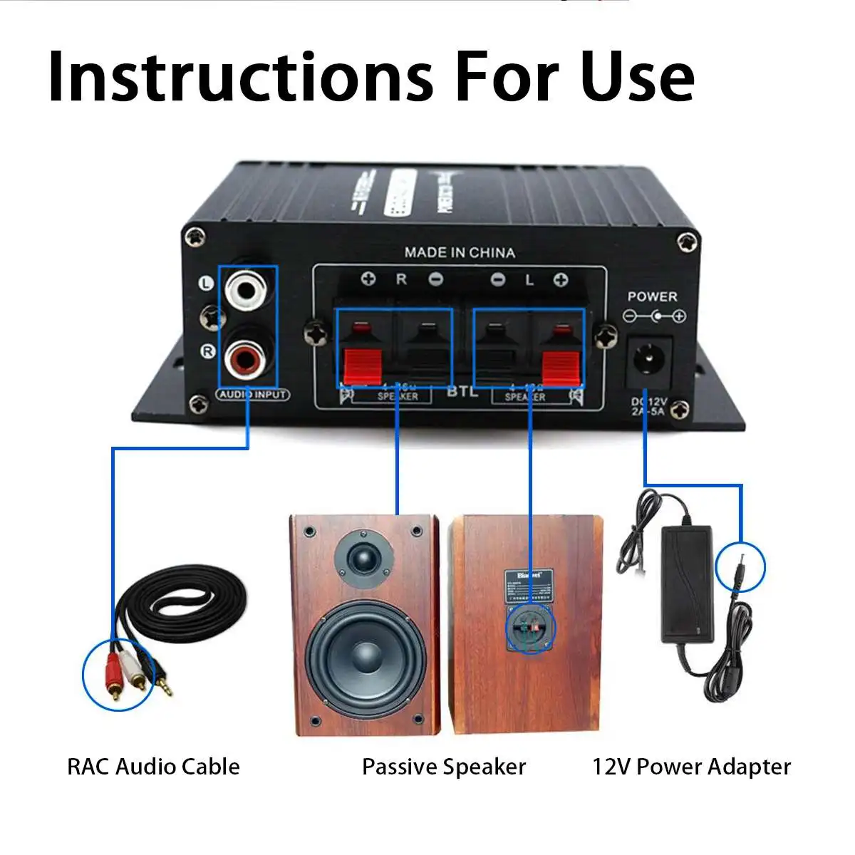 Примечание:Если вы хотите использовать его в качестве домашнего усилителя, вам нужно купить адаптер питания 220 В-12 В.