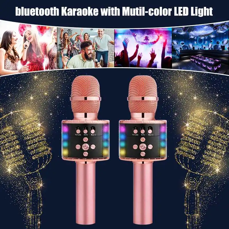 Беспроводной bluetooth-микрофон для караоке с многоцветной светодиодной подсветкой, портативная Портативная колонка 4 в 1 для домашней вечеринки, караоке, автомат, подарок на День Благодарения для Android/iPhone/iPad/ПК