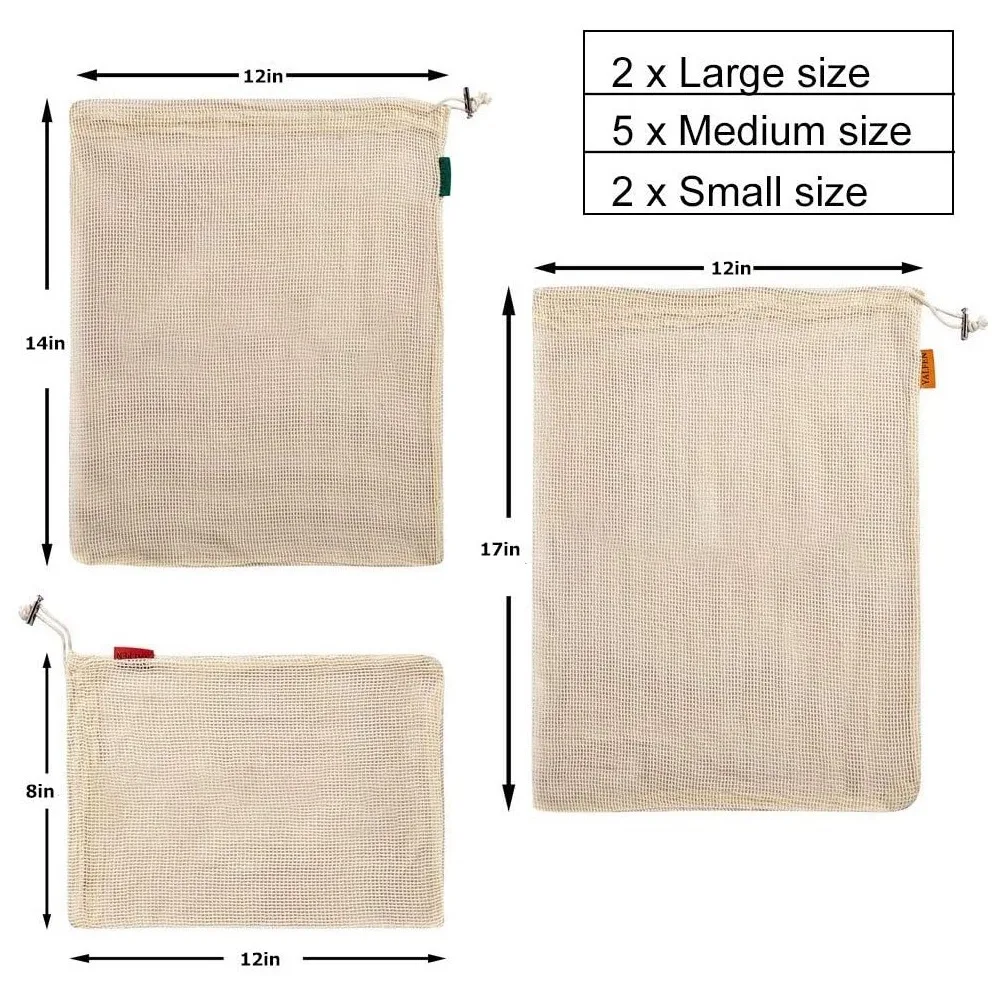 Durable & Washable -- Made of a strong organic cotton mesh and double stitched. Mesh design to keeps your fruits and vegetables breathable freely, machine washable.