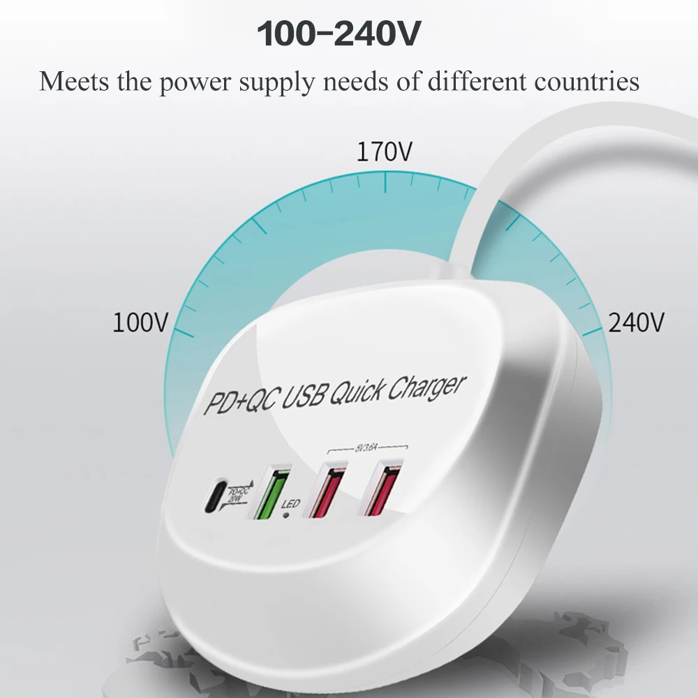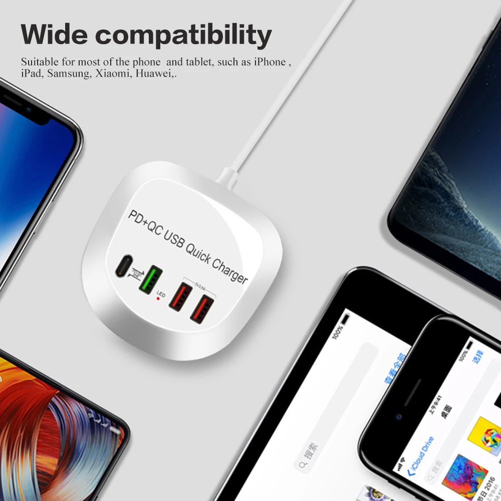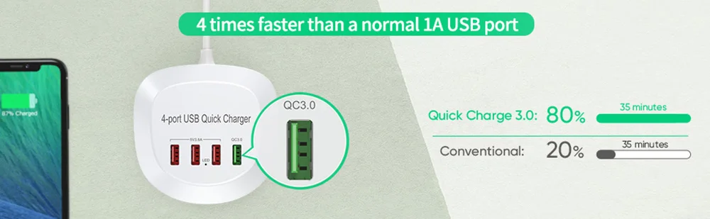 ✔Зарядка 4 устройств: 3*5 В/0-2.4A USB порты, 1 * QC 3,0 USB порт, Максимальная общая мощность 36 Вт. Он автоматически обнаружит ваши устройства и доставит им оптимальный ток. Вы можете заряжать телефоны, bluetooth-наушники и цифровые камеры одновременно.