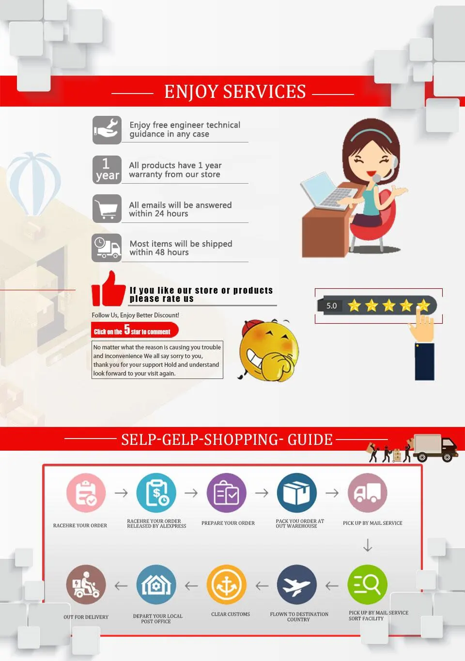 Поддержка бесплатного возврата в течение семи дней без причины, 365 дней для бесплатной замены оборудования с любыми проблемами, и для любых проблем в течение пятилетнего гарантийного срока, мы поддерживаем онлайн-техническую поддержку, так что вы можете использовать его без каких-либо проблем.