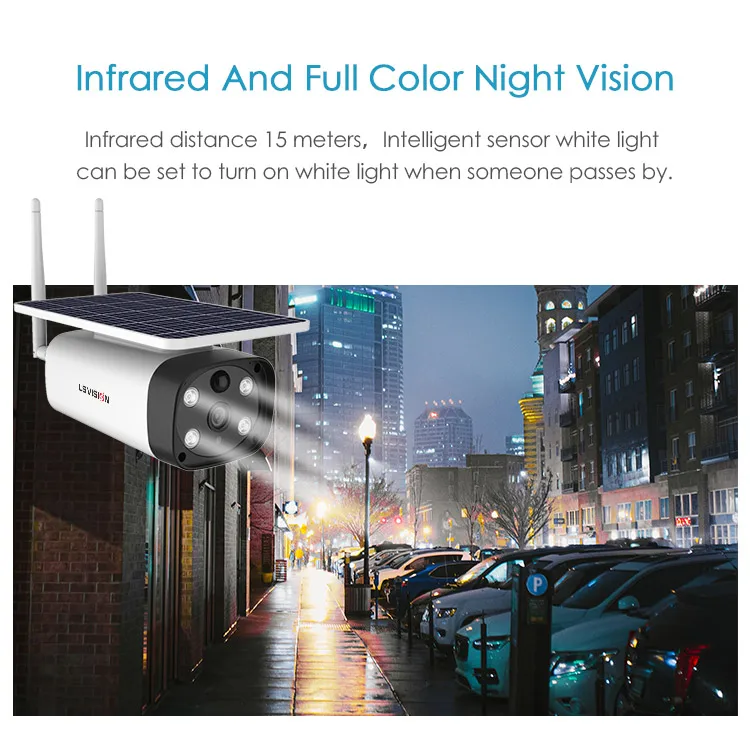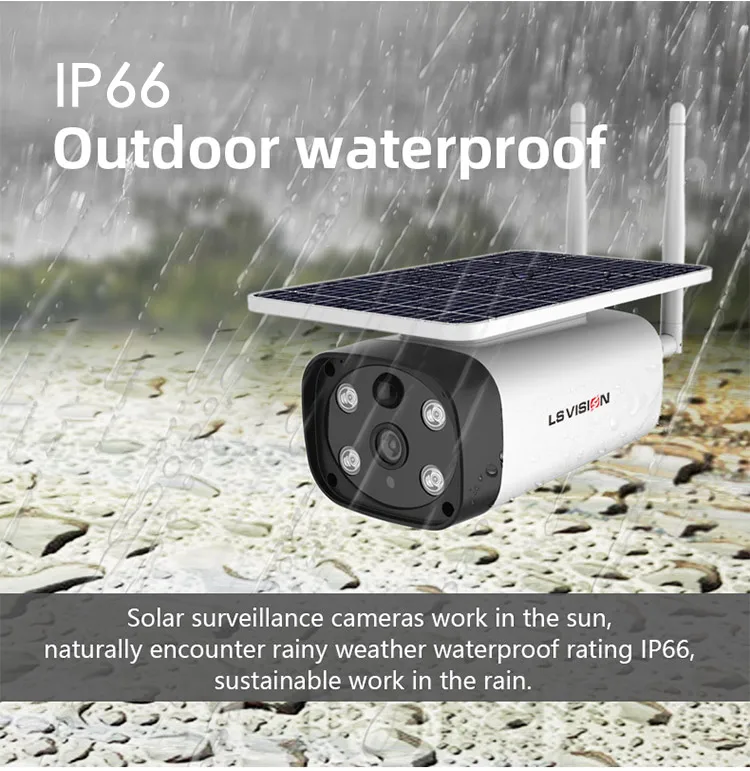 IP66 Открытый водонепроницаемыйСолнечная камера наблюдения работает на солнце, естественно сталкиваются с дождливой погодой водонепроницаемый рейтинг IP66, устойчивая работа в дождь