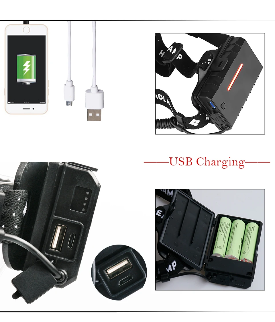 XHP100-GHT319C1:1 * налобный фонарь + 1 * USB + 1 * зарядное устройство (ЕС/США) + 3*18650 аккумулятор) + 1 * Подарочная коробка