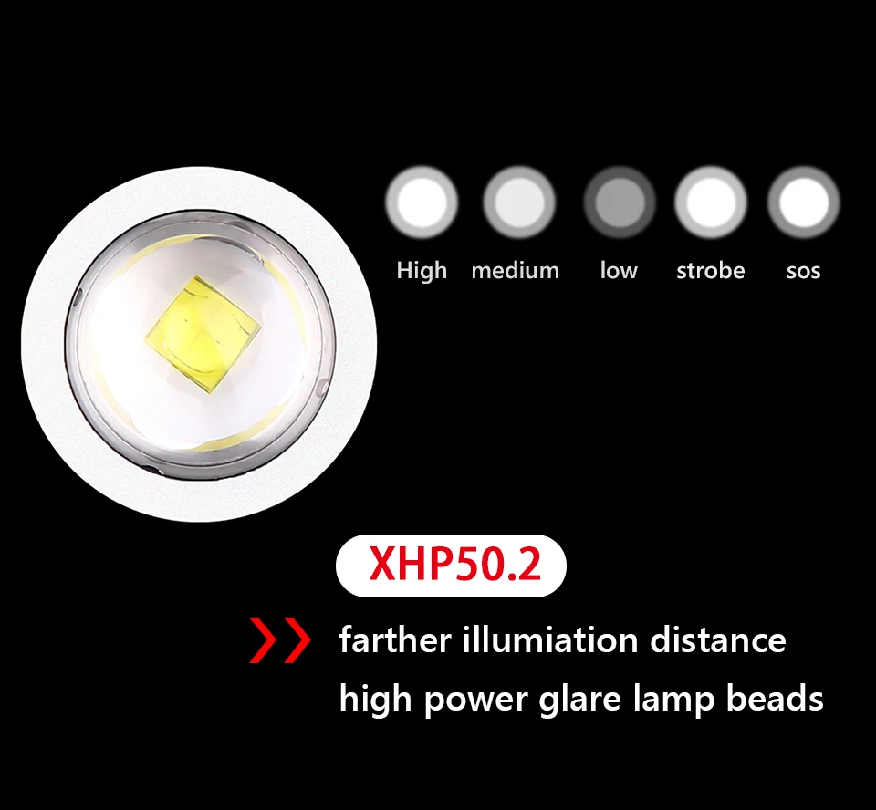 Режим: 5 режимов (100% - 70% -50%-вспышка-SOS)
