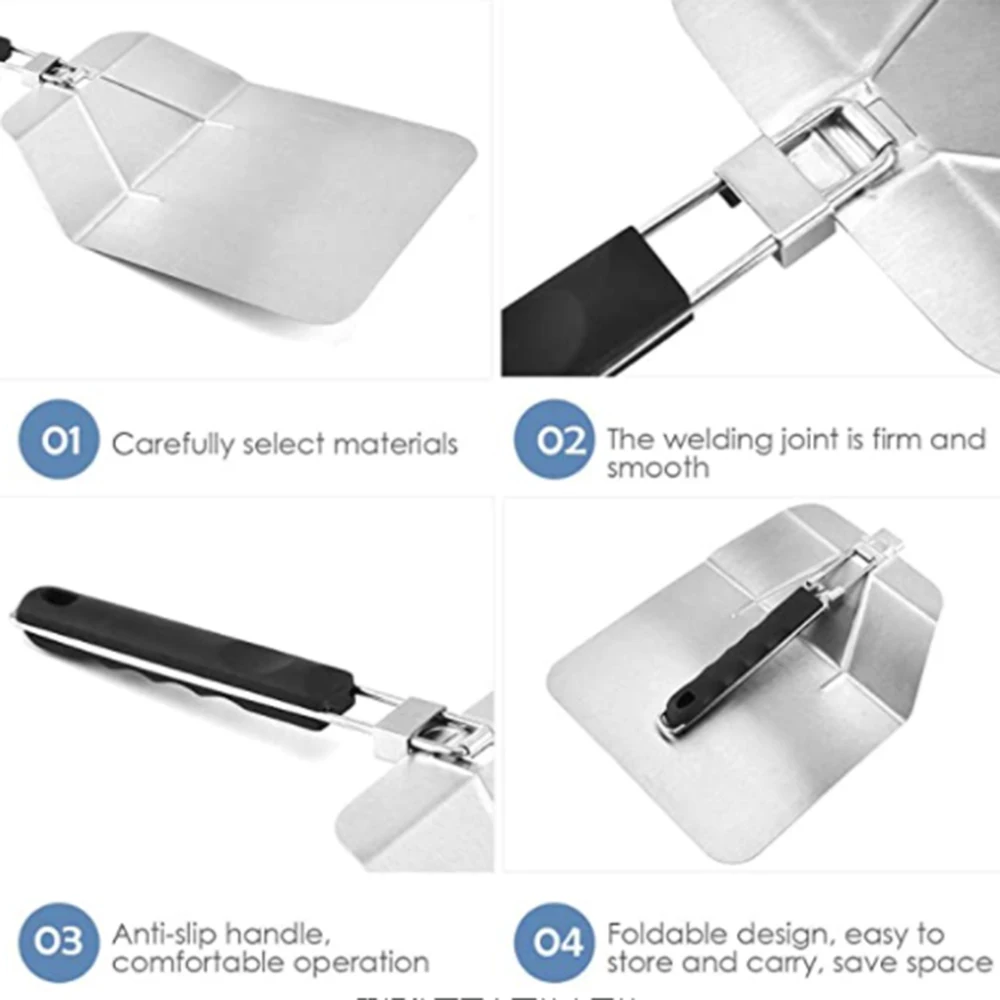 Лопата для пиццы из нержавеющей стали, лопата для пиццы со складной ручкой, противоскользящая лопатка для пиццы для выпечки домашней пиццы и хлеба
