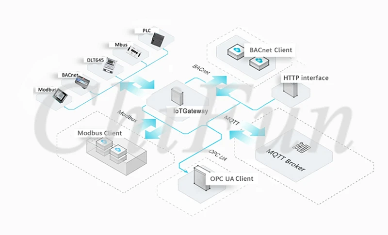 Gateway403-шлюз сбора данных IoT, основанный на прочной аппаратной платформе, полноценном программном ядре. Обеспечивает 4 последовательных порта RS-485 и 2 порта Ethernet 10/100 Мбит/с и поддерживает модули 4G. Шлюз встроен в Modbus, BACnet, DLT645 и другие драйверы сбора данных. Она обеспечивает интеграцию драйвера запатентованного протокола. Шлюз действует как Modbus RTU. Сервер Modbus TCP предоставляет внешние данные. Шлюз и облачная платформа используют Протокол мгновенного обмена сообщениями MQTT для передачи данных. Точки данных шлюза освобождаются через подписку. Механизм выдвигается в облако, и облако может считывать и записывать на переднее устройство через шлюз.