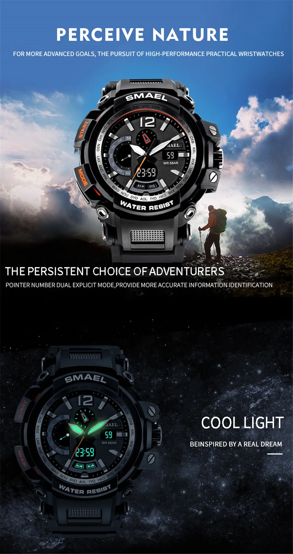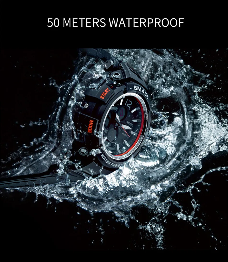 1x100% Smael Брендовые спортивные новые мужские часы
