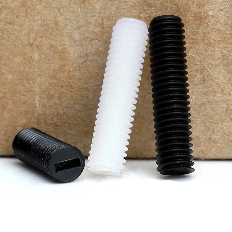100 шт./лот M4Черный/белый цветНейлоновый набор болтов с резьбой из пластика с плоской головкой, метрический Безголовый болт с прорезями
