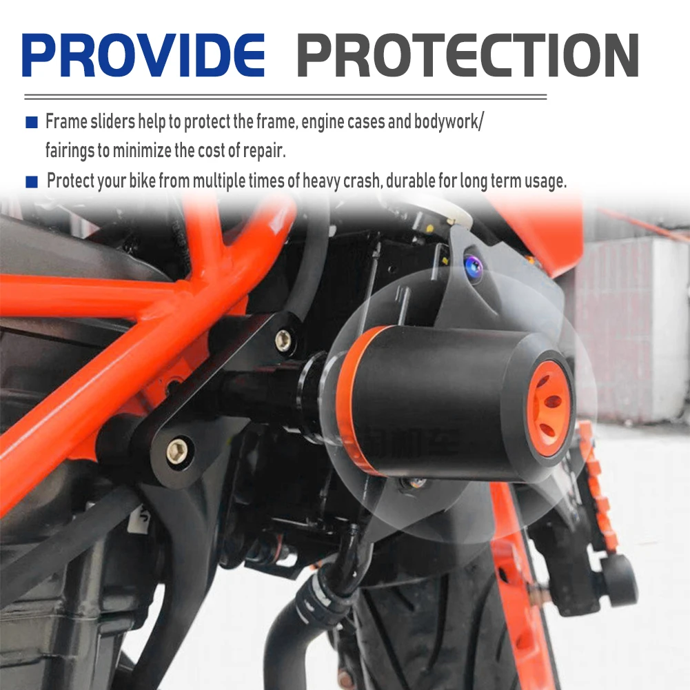 -Прочный и используется для длительного использования. -Предназначен для предотвращения сбоя и царапин на мотоцикле во время гонок или быстрой езды. -Значительно уменьшает повреждения ваших пластмасс, корпусов двигателя и рамы. Лучший способ минимизировать стоимость ремонта. -Простота установки с инструкцией по установке