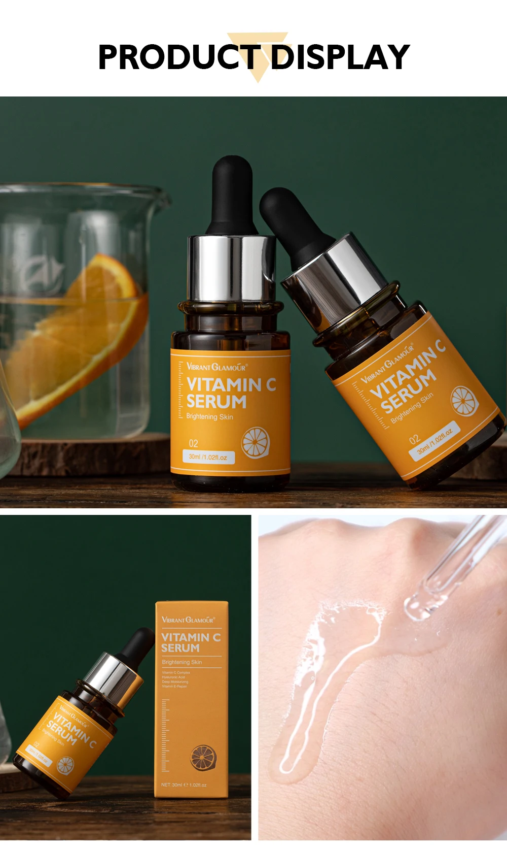 Витамин С является природным и эффективным антиоксидантом, который специализируется на избавлении от свободных радикалов. Но человеческое тело не может генерировать Витамин С самостоятельно и получить его только из внешнего мира. Яркая Гламурная сыворотка витамина С содержит 3-o-этиласкорбиновую кислоту, которая является производной витамина С. Обладает лучшей стабильностью и проницаемостью, сохраняя биологическую активность витамина С. С отличной производительностью в заполнении меланоцитовой активности и стимулировании генерации коллагена