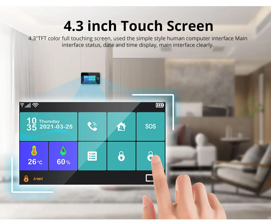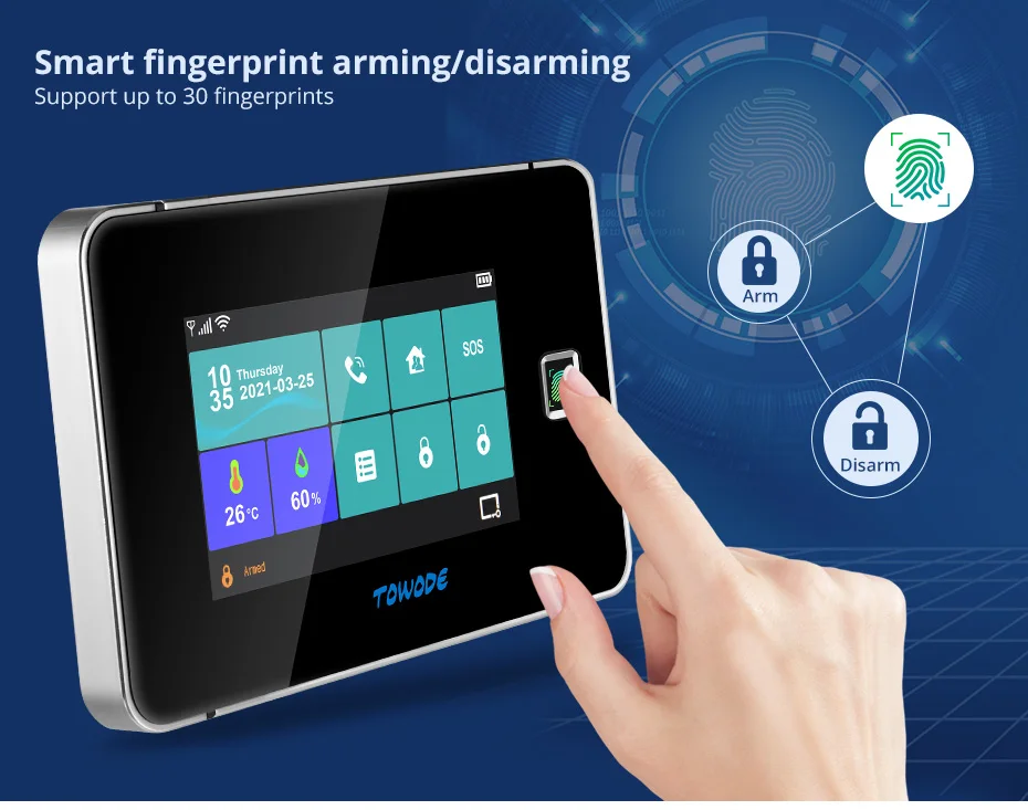 It is a full new function of equipped with fingerprint touch arming or disarming,you can set up your home alarm system more freely.
