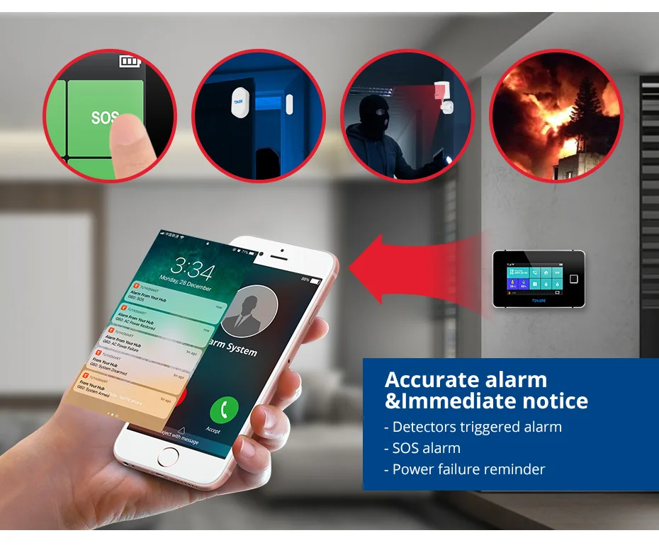 This alarm system support tuya smart app remote control and it is an linkage alarm system that can prevent thieves, gas leaks, fires at any time, protect the safety of you and your family.